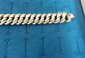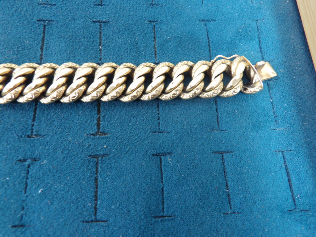 Bracelet en or (poinçon rhinocéros) mailles américaines 21 cm, 36g.