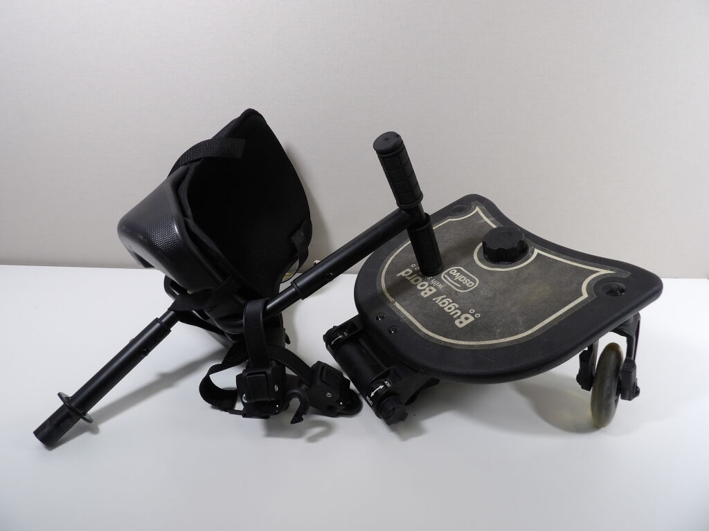 BUGGY BOARD d'occasion, planche à roulettes avec siège a attacher derrière la poussette pour le grand frère ou soeur. Vendu en l'état.