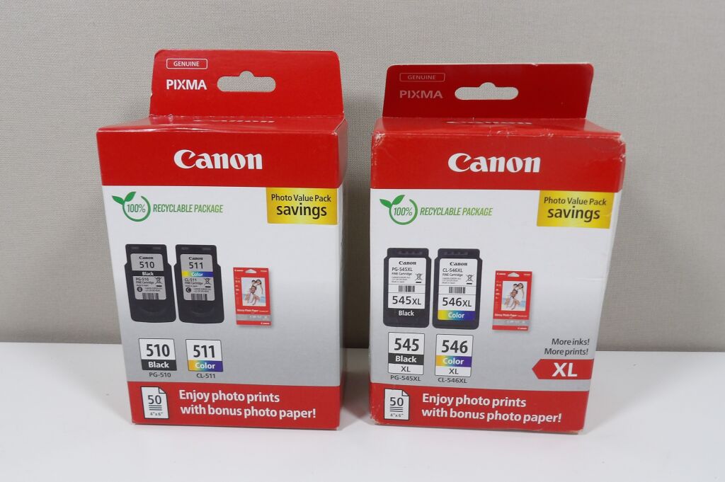 Bureautique - Lot de 2 packs de Cartouches Encres Canon réf: 510-511 et 545 - 546 XL avec 50 feuilles de papier photos