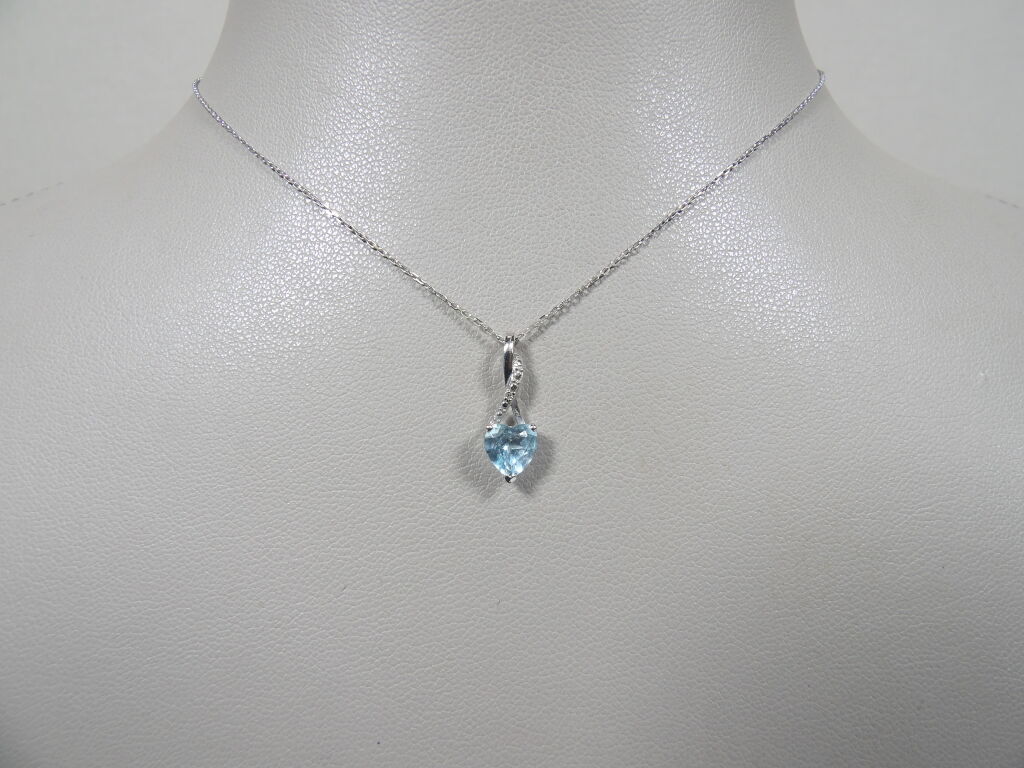 Chaîne et pendentif serti d'une pierre bleue taillée en coeur en or 375/1000