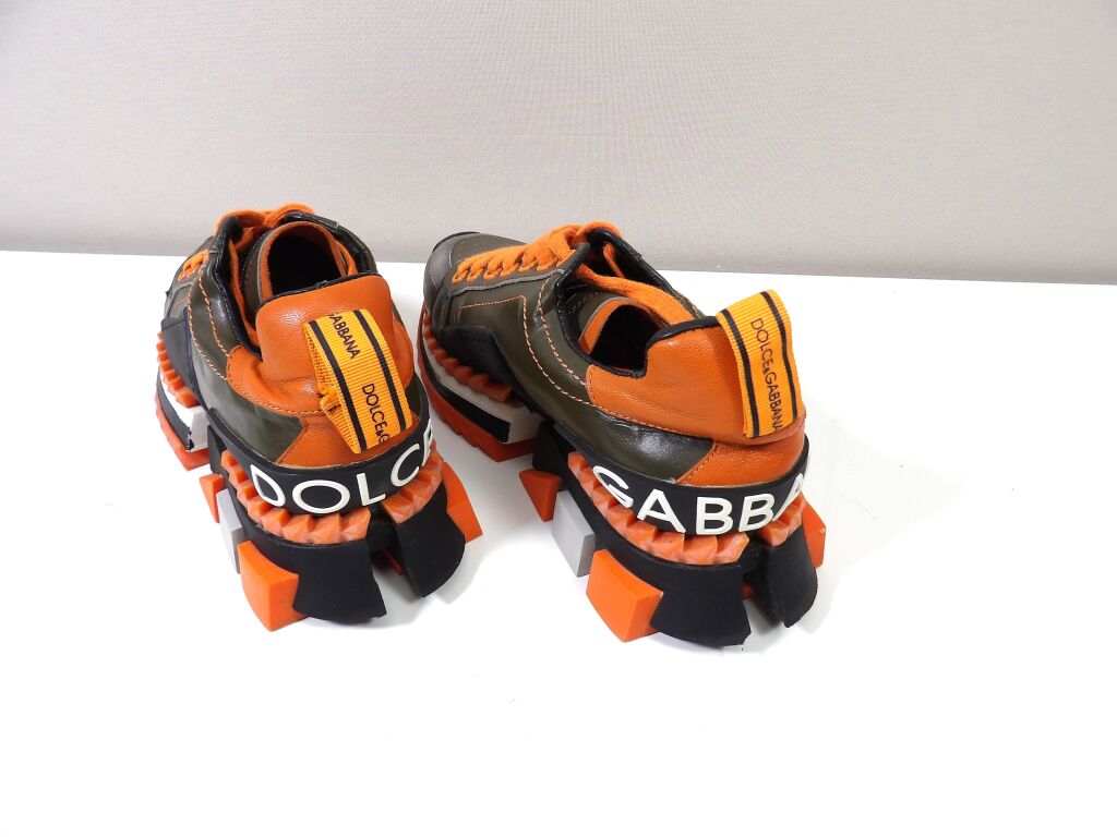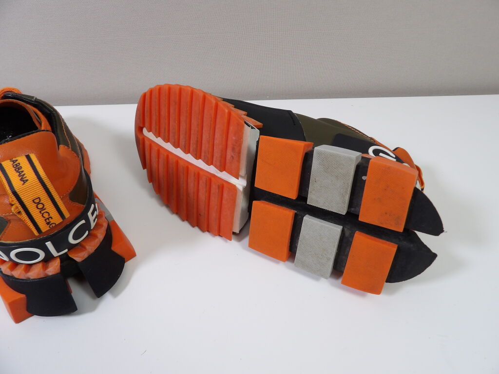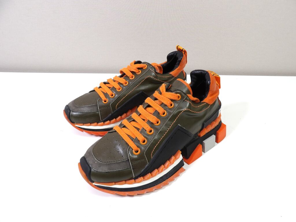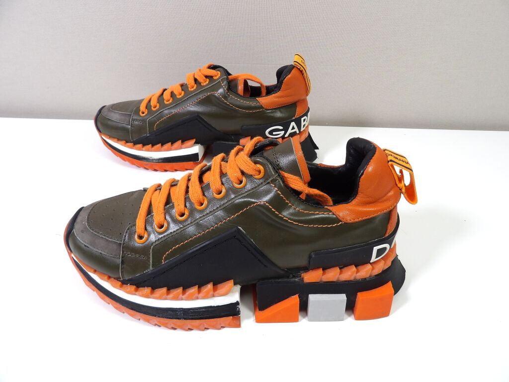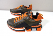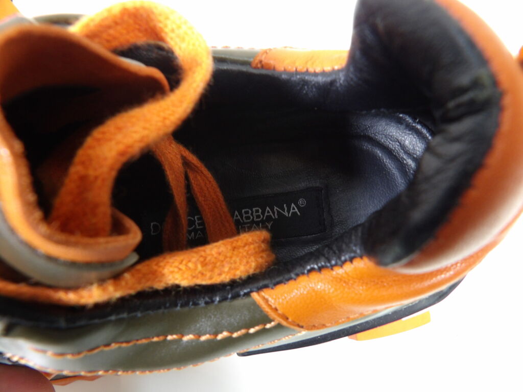 Dolce & Gabanna - Paire de sneakers en cuir kaki et détails orange - Occasion état correct - Taille 38