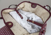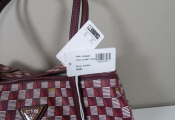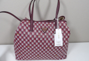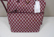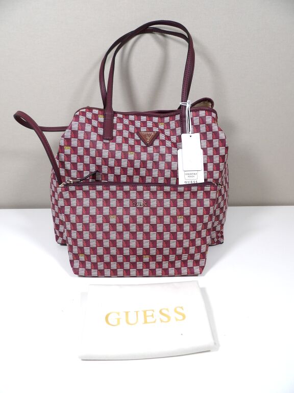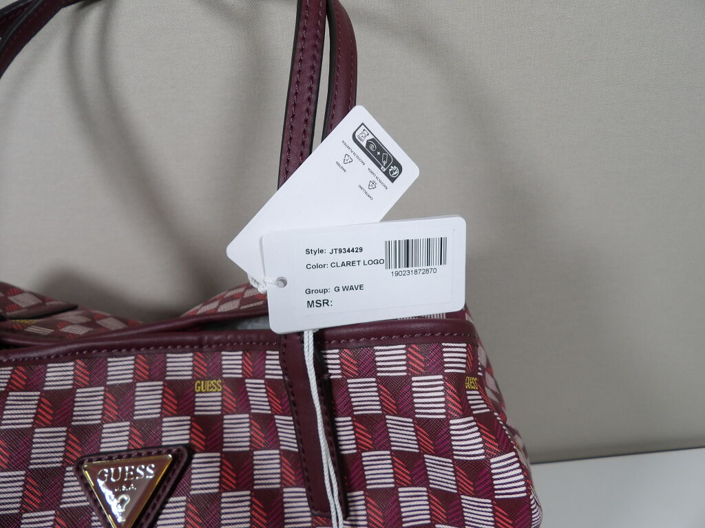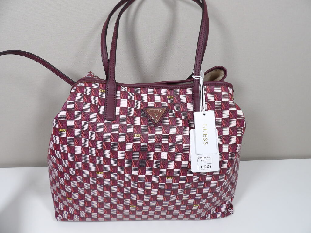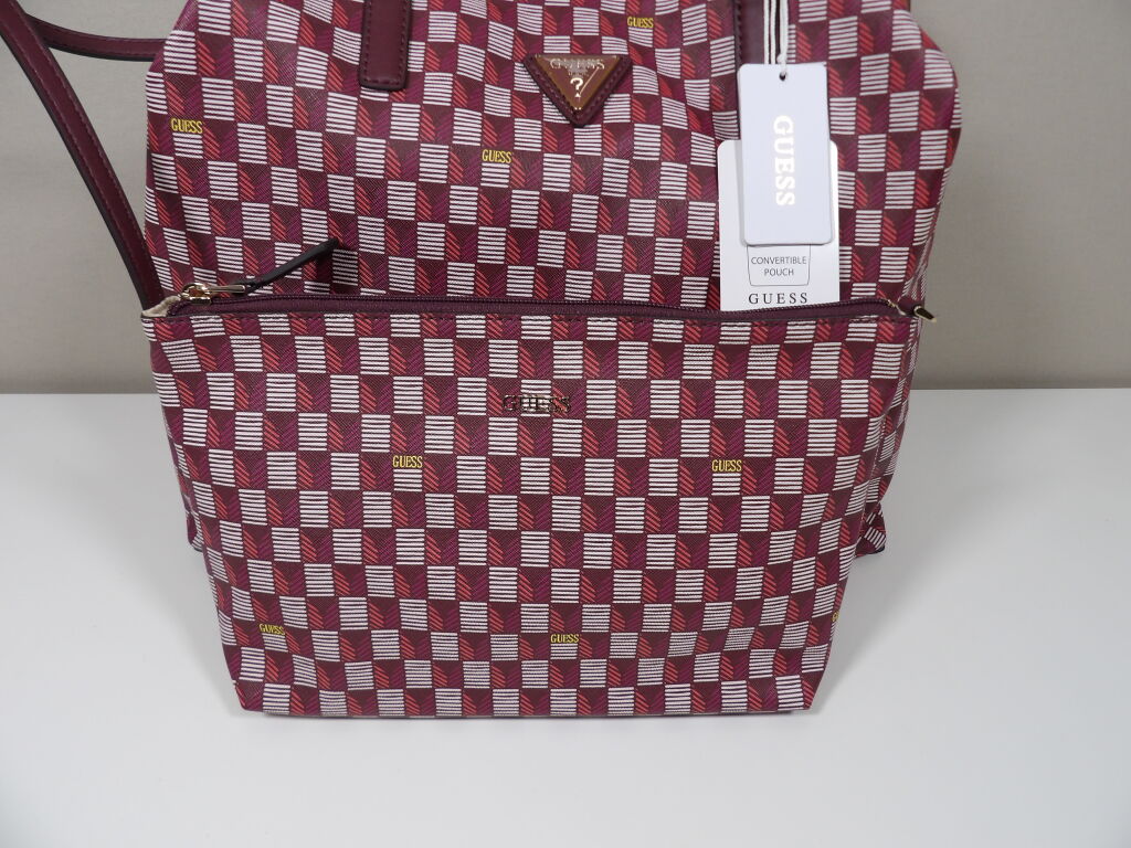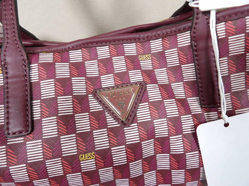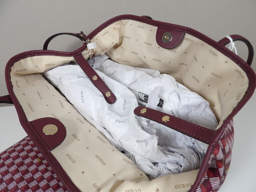 GUESS - Sac cabas G Wave imprimé géométrique coloris rouge - prune et écru - Neuf avec étiquette