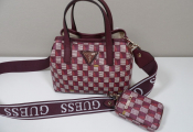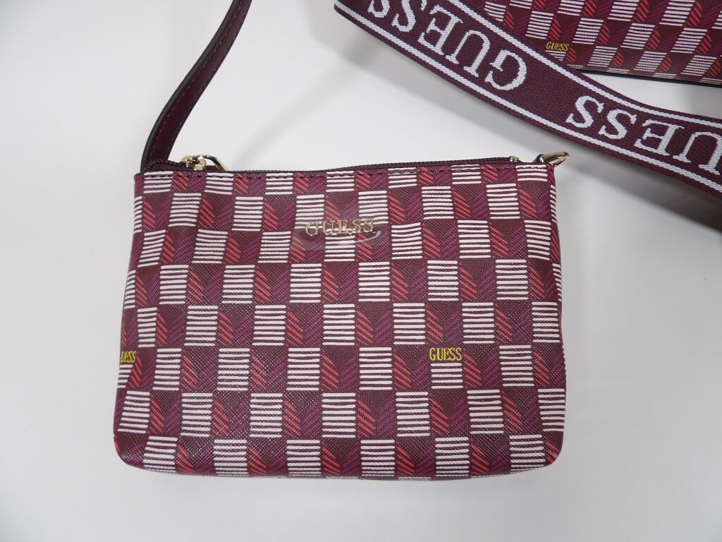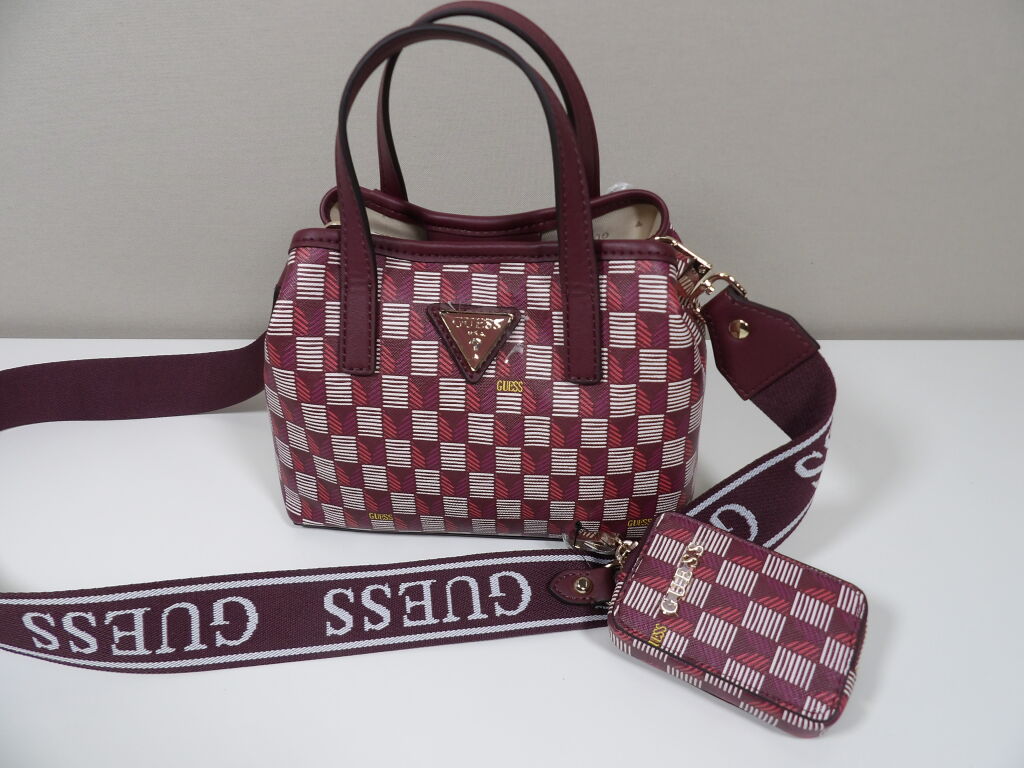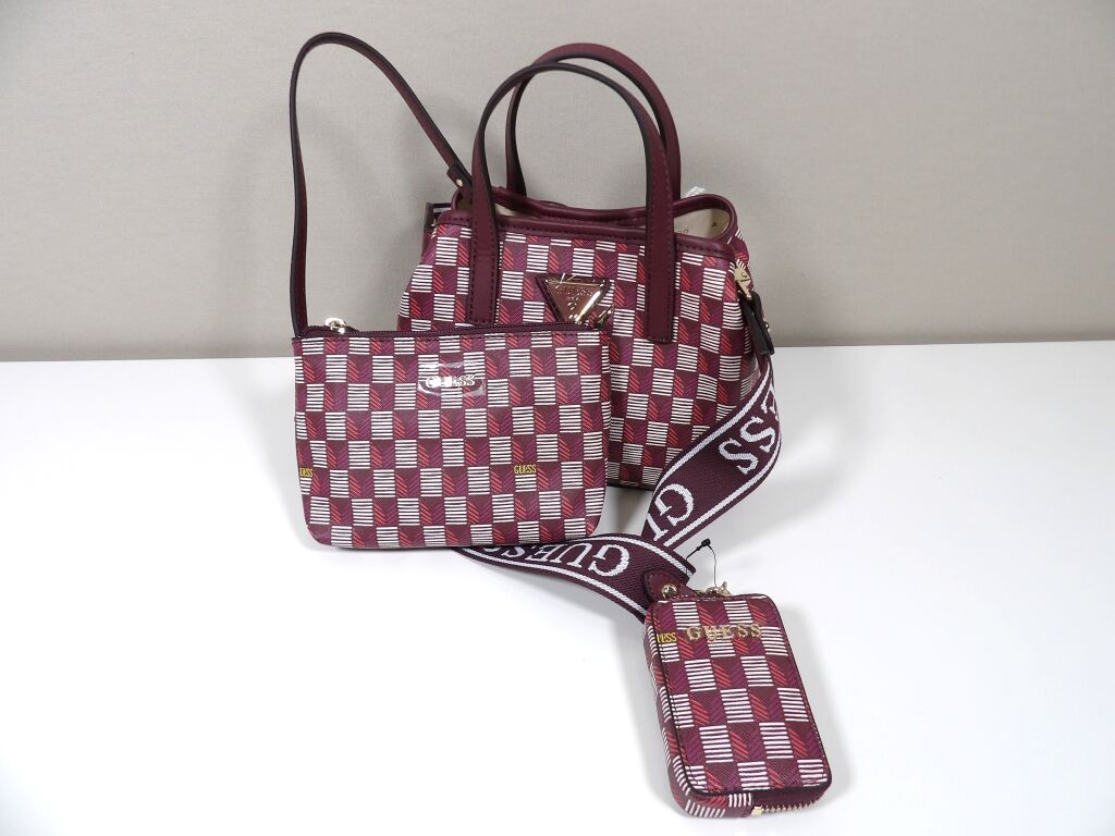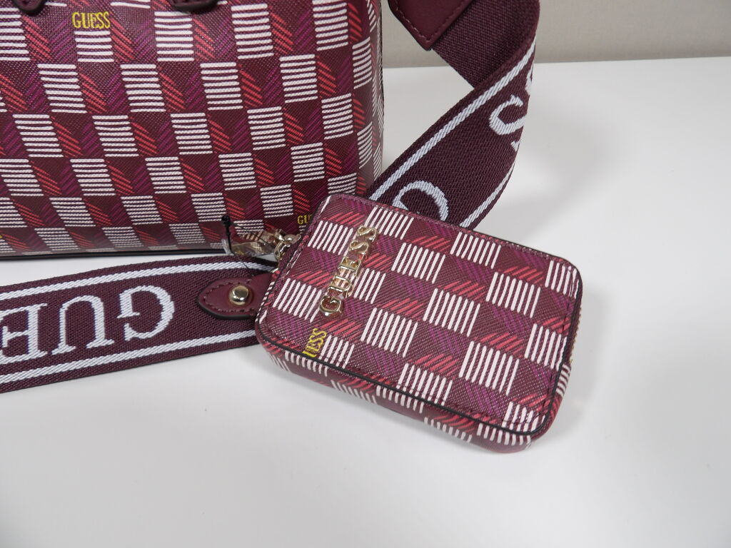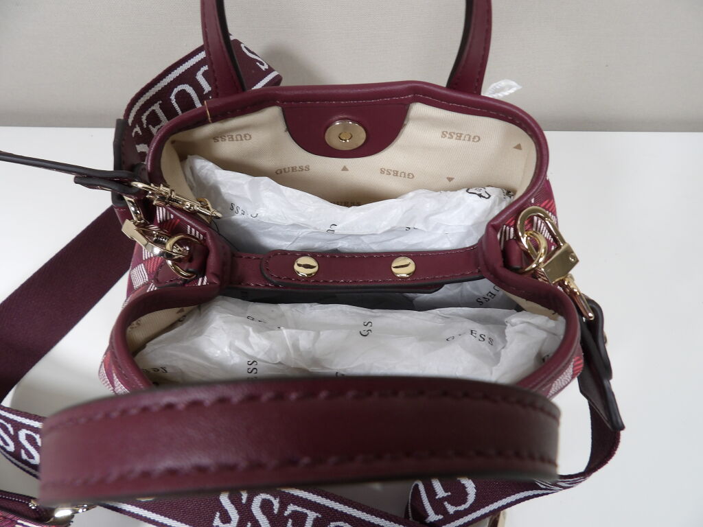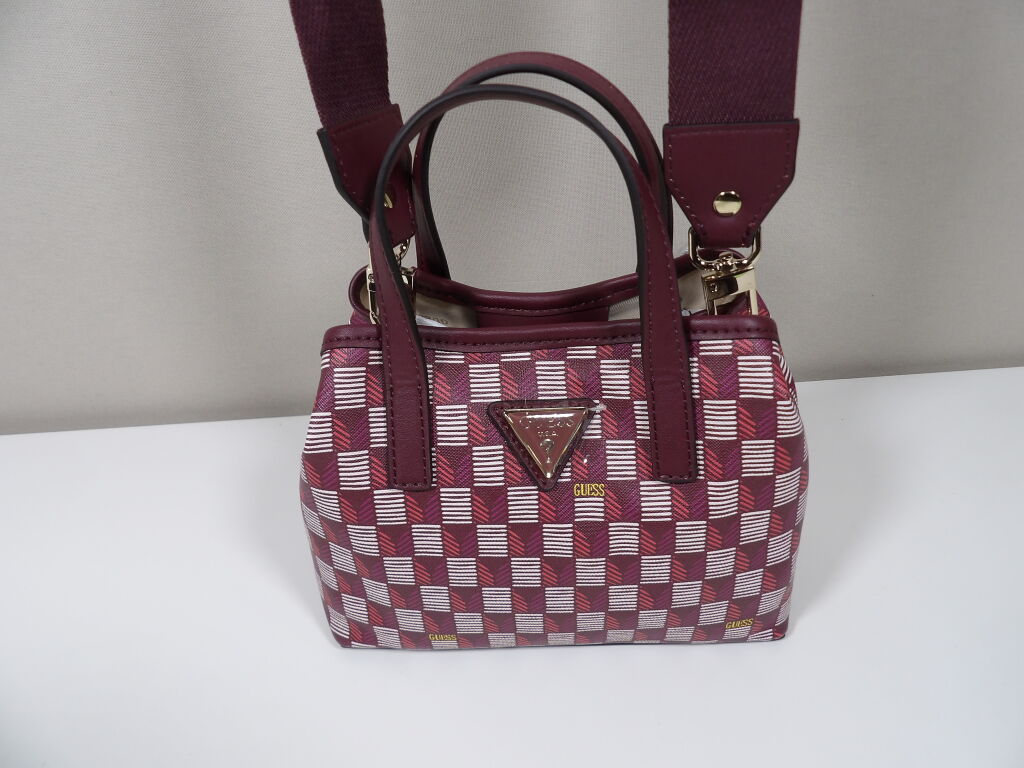 GUESS - Sacs à main Sac à main - G Wave Ii Mini Tote bag - coloris prune - rouge et écru - Neuf avec étiquette