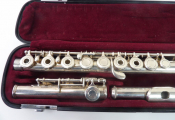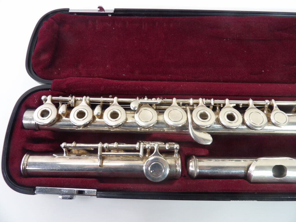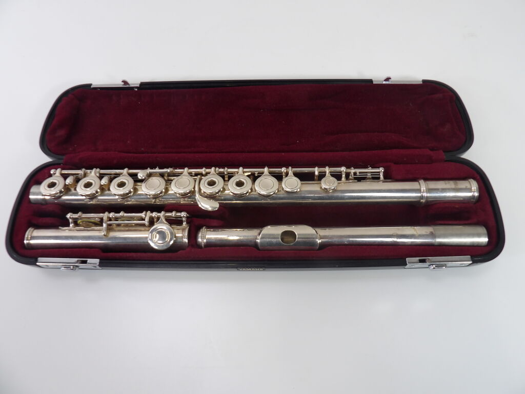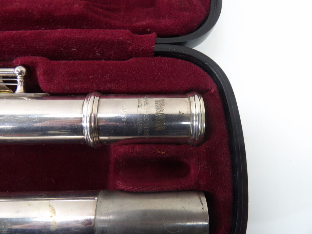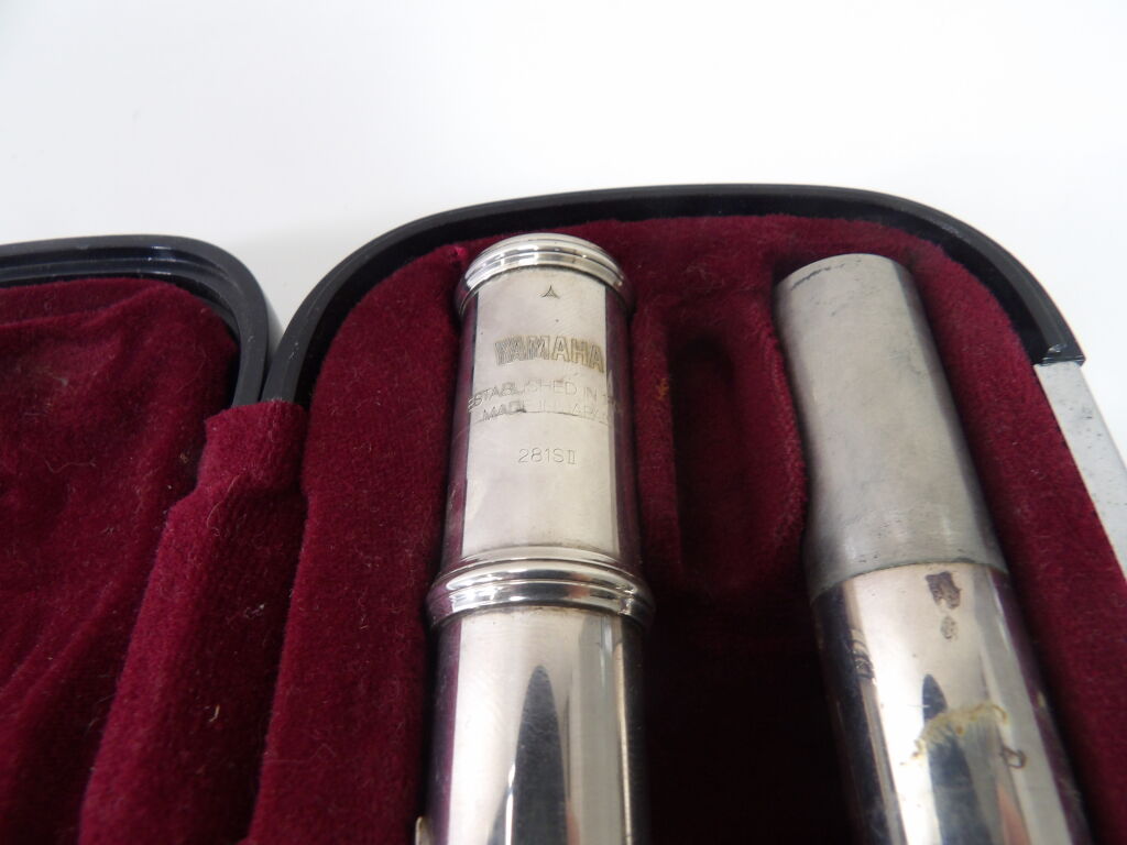 Instrument de musique : flûte traversière Yamaha 281 SII avec son étui rigide de transport, état d'usage