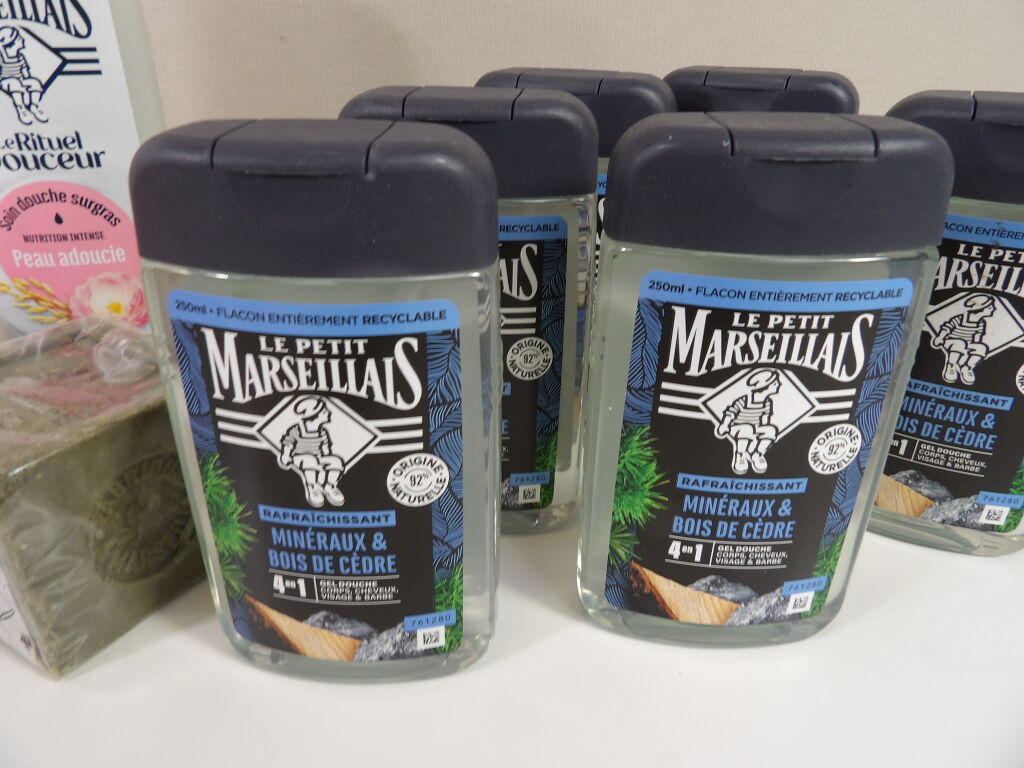 -x6 gels douche Minéraux et bois de cèdre, de 250ML, x1 gel douche lait d'avoine 400ML