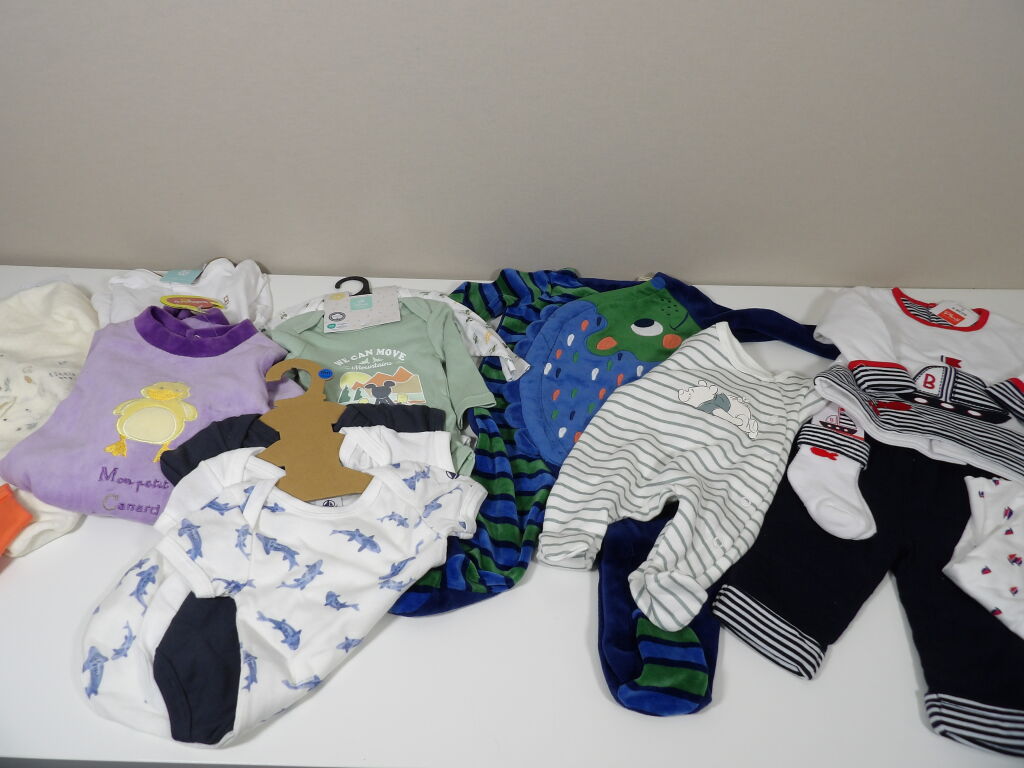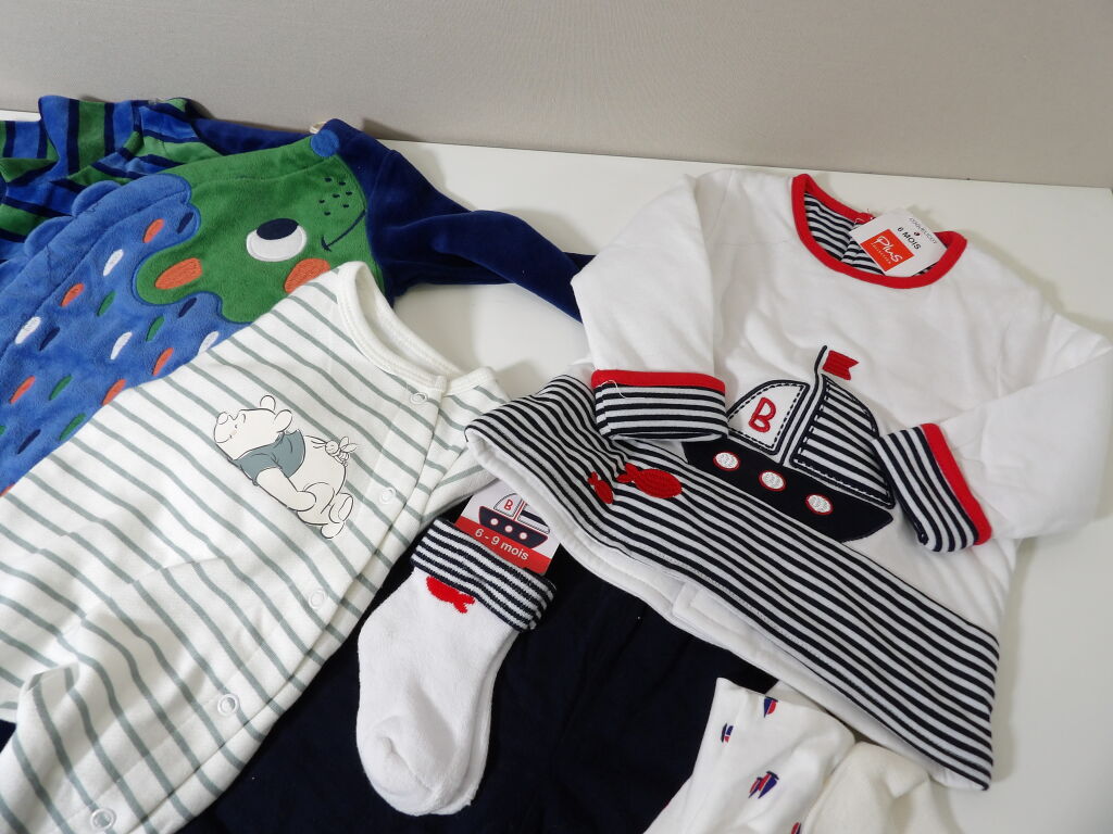 Lot de 14 vêtements pour BÉBÉ - garçon : 3 à 9 MOIS; neufs avec étiquettes.