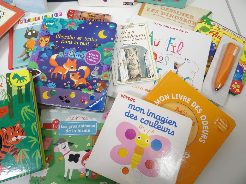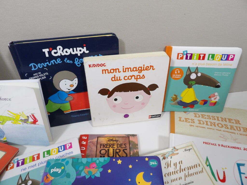 Lot de +25 livres pour ENFANT d'occasion : Cherche & Trouve, ou est ta tétiné, Abécébêtes, P'tit Loup, Les animaux à protéger, mon imagier en couleurs, au fil des émotions, le concours de force, T'choupi, ....