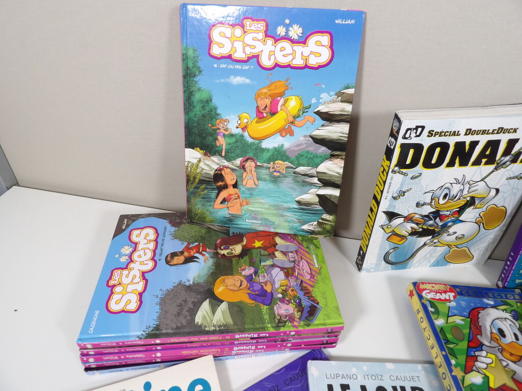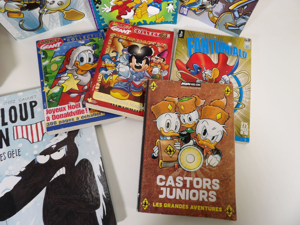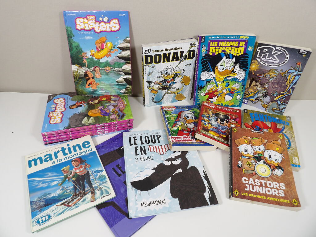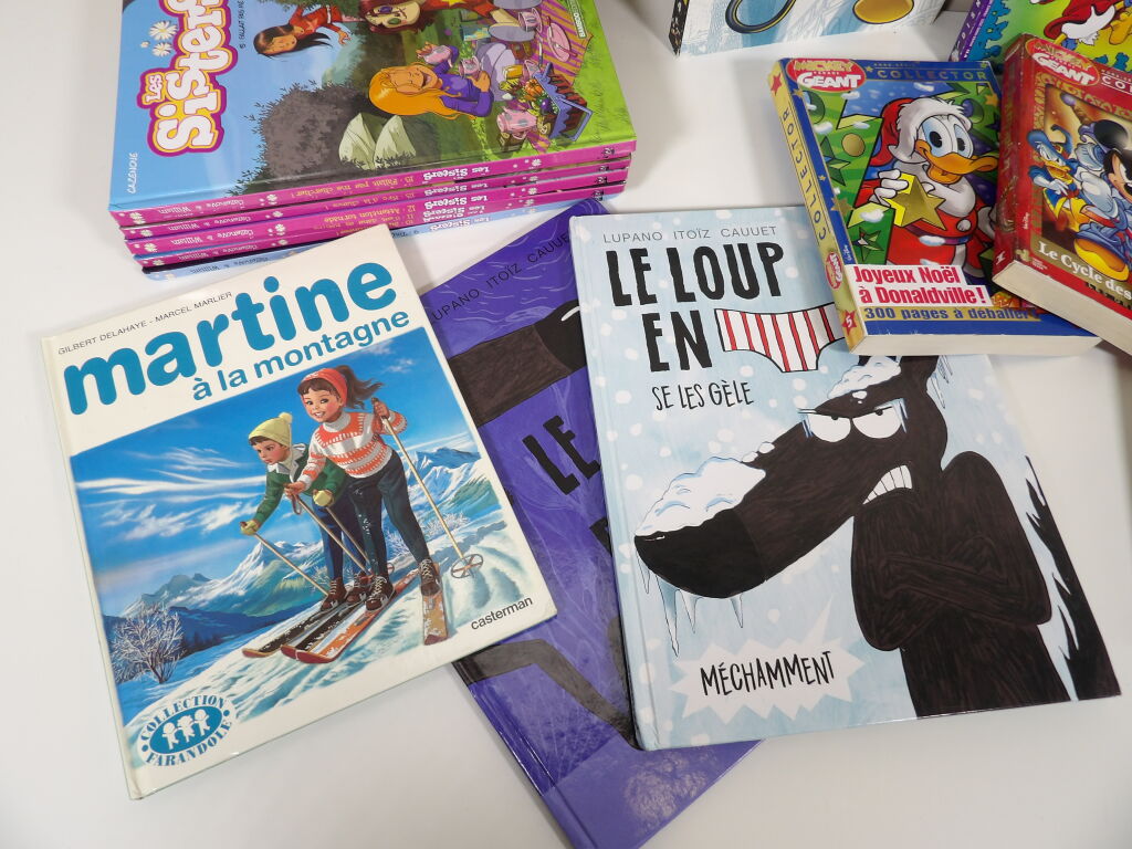Lot de x10 livres BANDES DESSINÉES / LIVRES ILLUSTRÉS d'occasion : Plus pour enfants : Donald Duck, Les Sisters, Martine, Castors Junior, Disney, Le loup en slip...