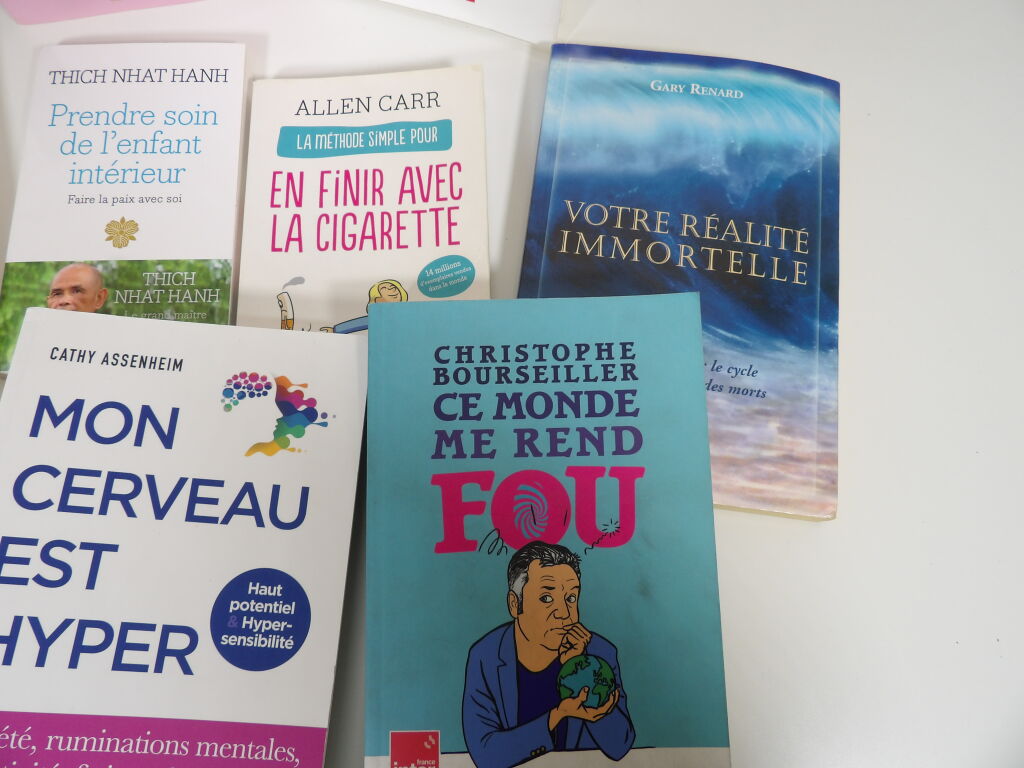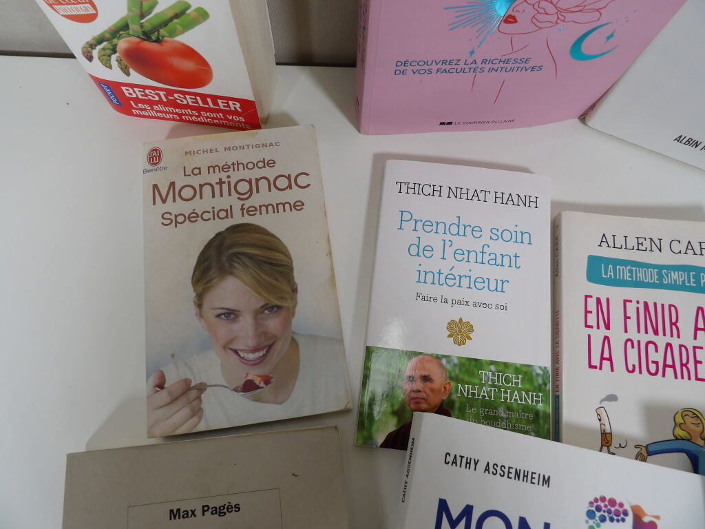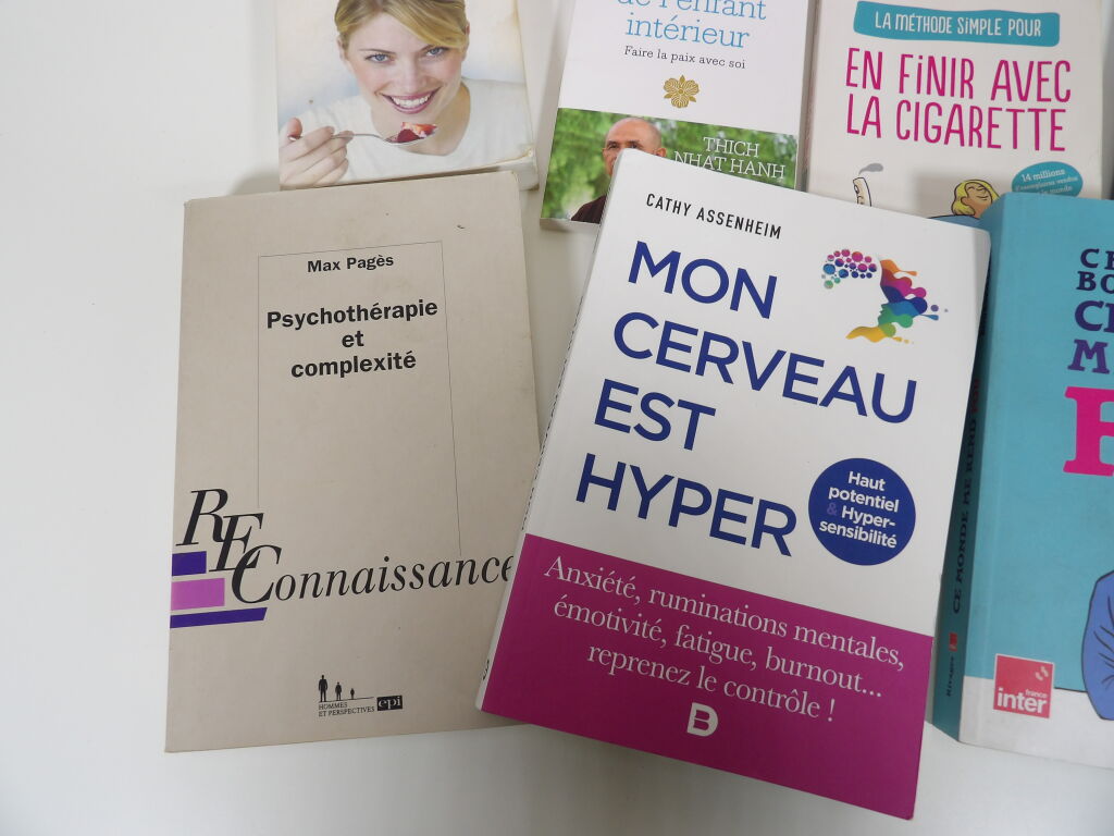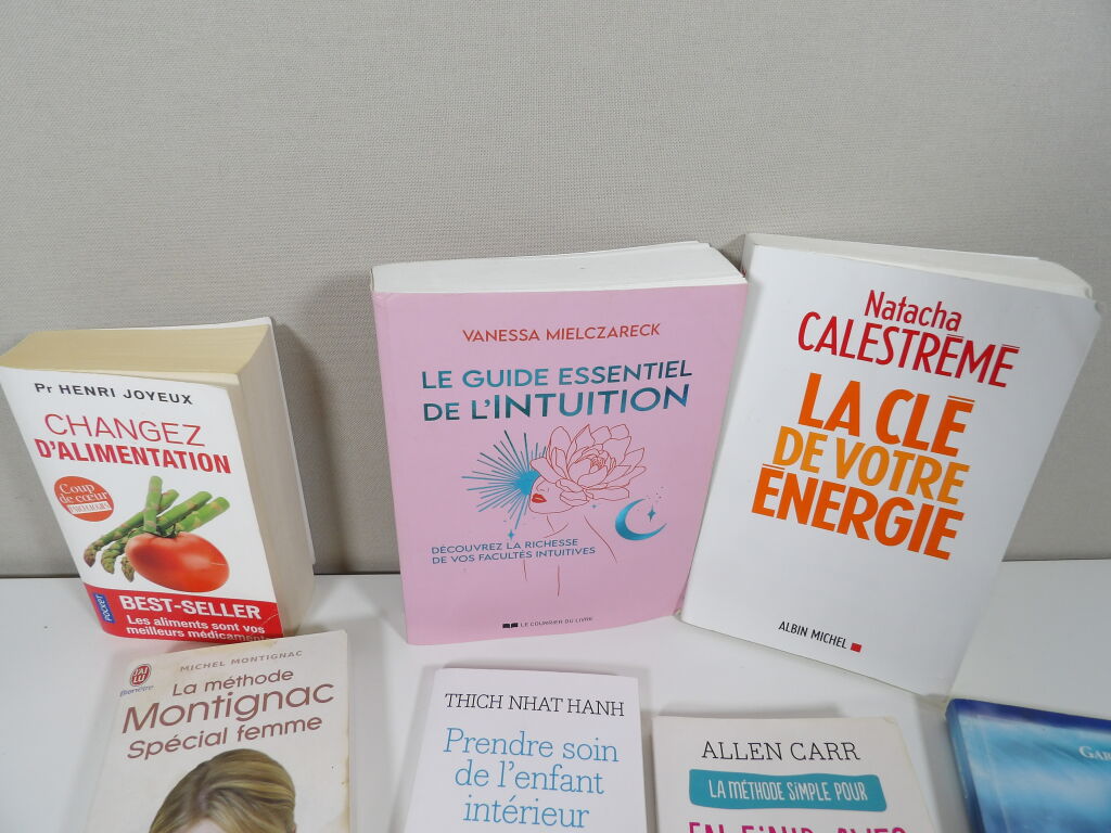 Lot de x10 livres sur le Développement personnel et bien-être d'occasion : La clé de votre énergie, Le guide essentiel de l'intuition, prendre soin de l'enfant intérieur, changez d'alimentation, mon cerveau est hyper, psychothérapie et complexité ....