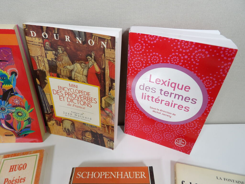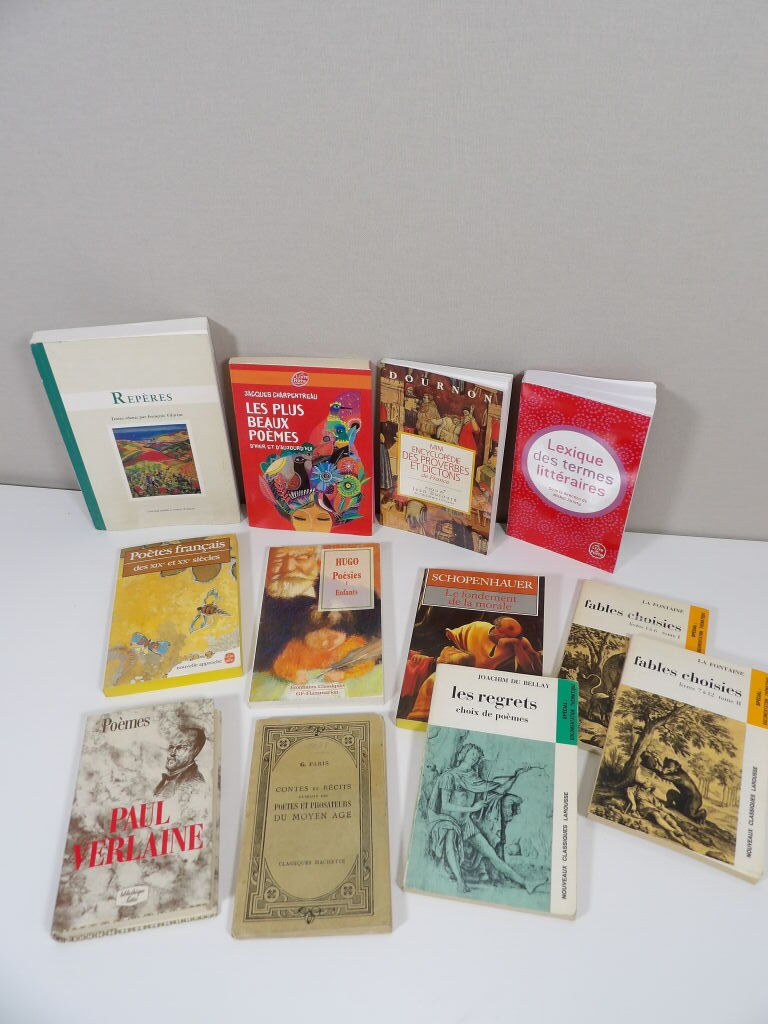 Lot de x12 livres sur la littérature française ; POEMES etc d'occasion : Lexique des termes littéraires, Mini encyclopédie des proverbes et dictons, les plus beaux poèmes d'hier et aujourd'hui, les fables, poésies, repères....