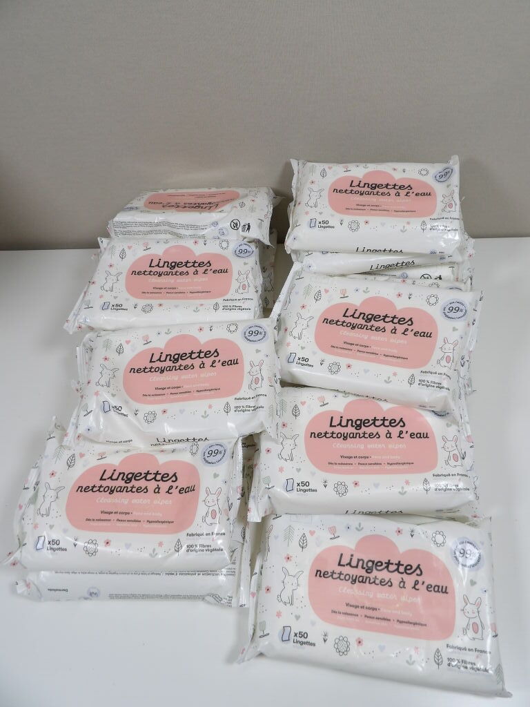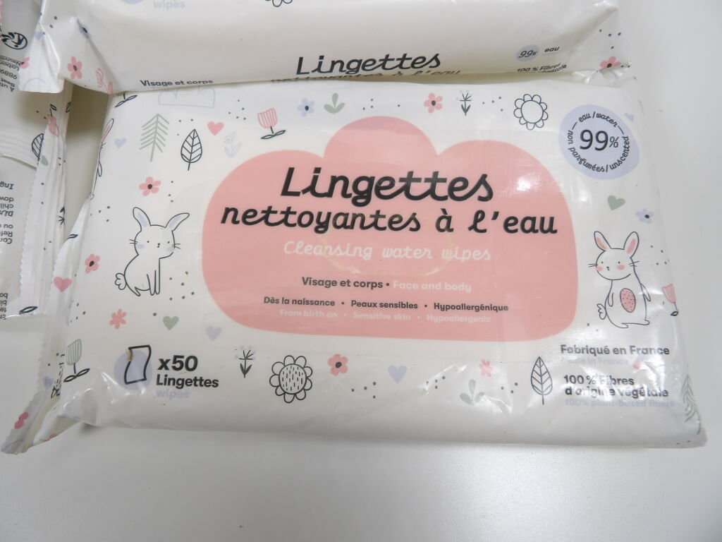 Lot de x20 paquets de lingettes nettoyantes à l'eau - visage et corps - (chaque paquet contient 50 lingettes).