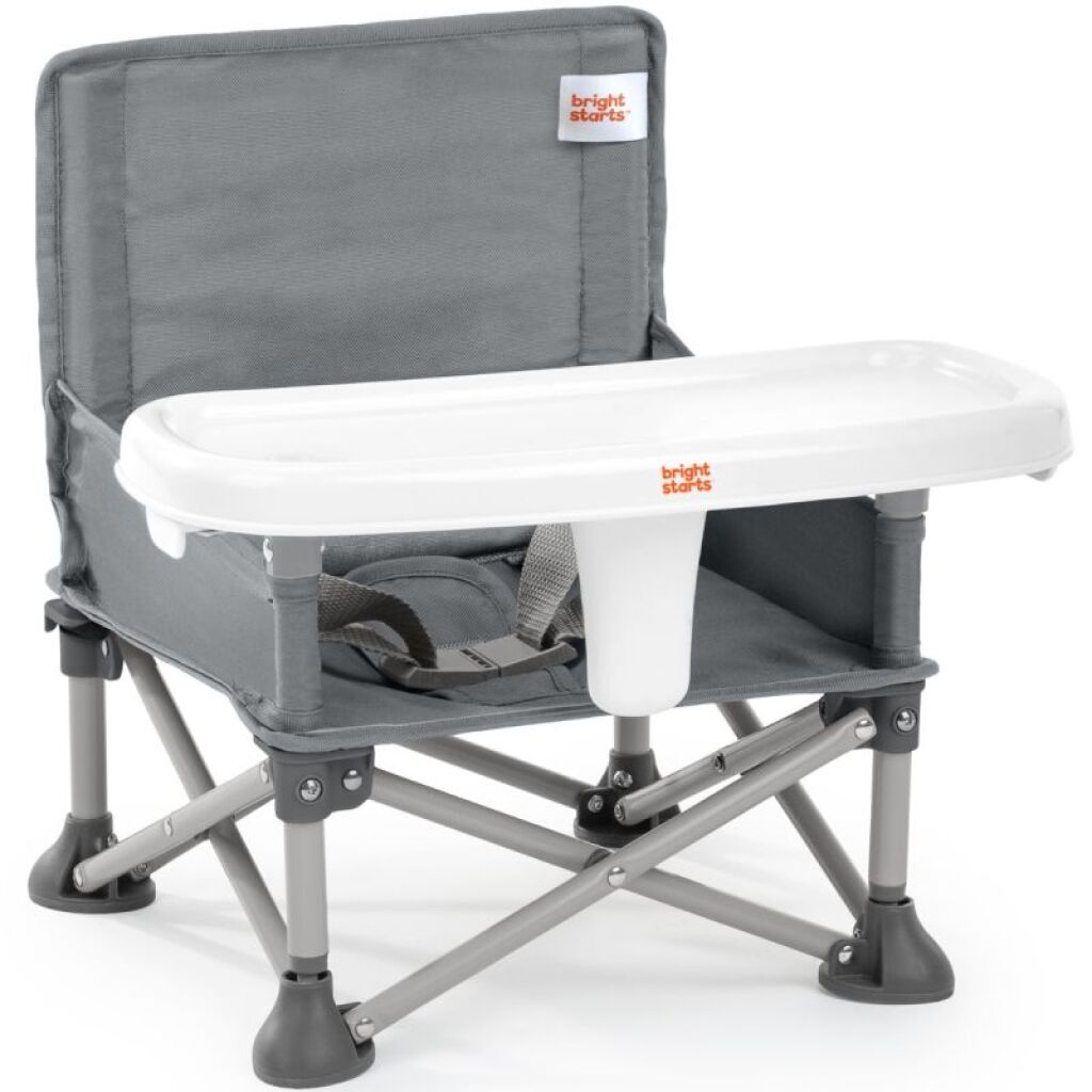 Lot de x5 articles pour BÉBÉ - REPAS NOMADE (neuf et occasion) : Siège avec plateau en réhausseur compact évolutif Pop'N Sit de Bright Stars (la 2ème image est de synthèse), avec sa housse de transport, d'occasion.
