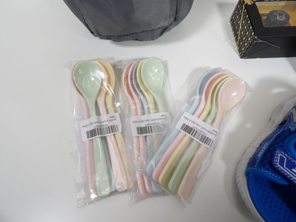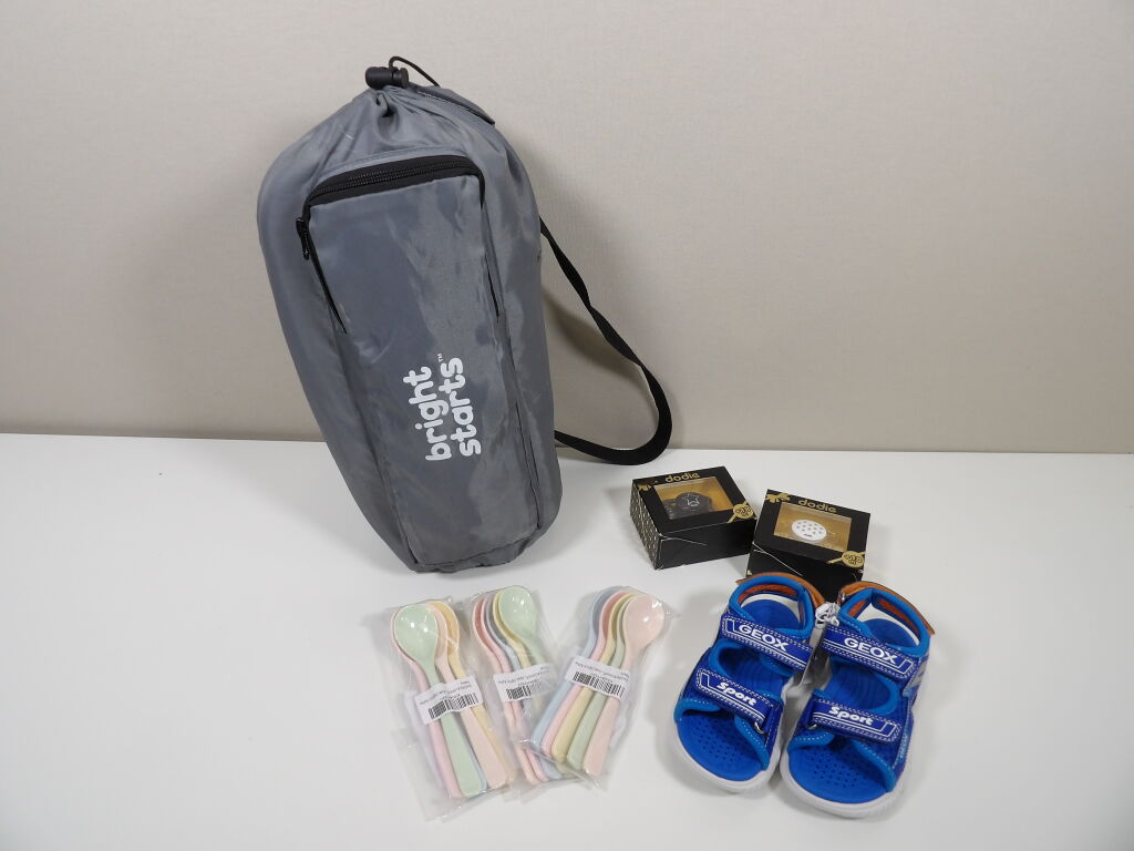 On y inclut des cuillères, x2 tétines dodie +18m, et des sandales GEOX en taille 25 neuves.
