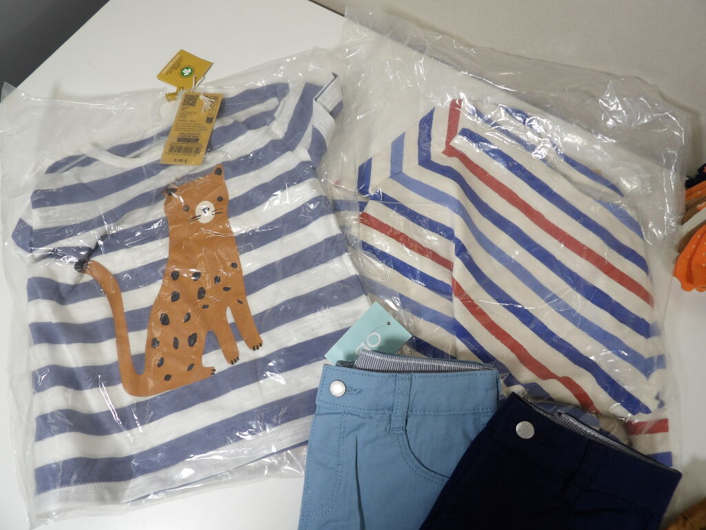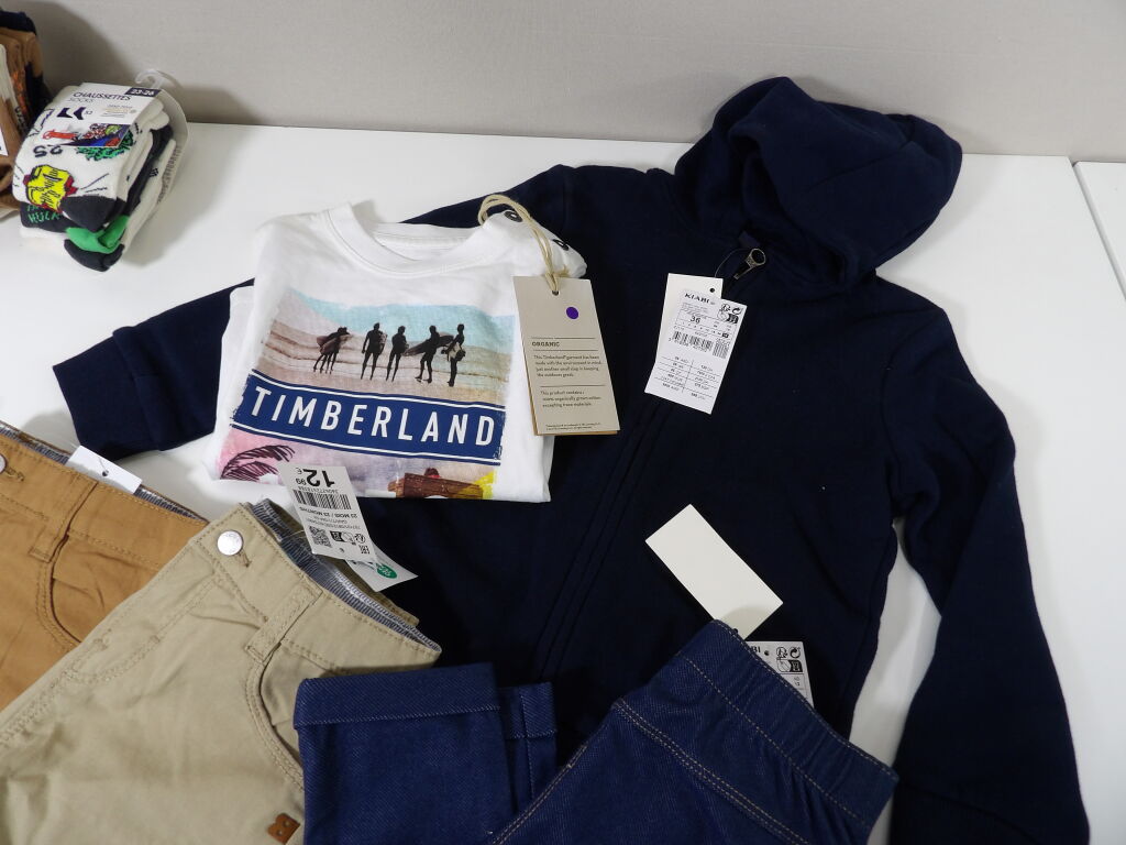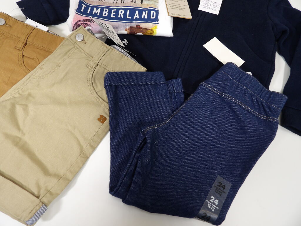 KIABI, BOUT'CHOU, et OBAIBI. On y inclut un tee shirt TIMBERLAND 12M. Et un sweat KIABI 36M