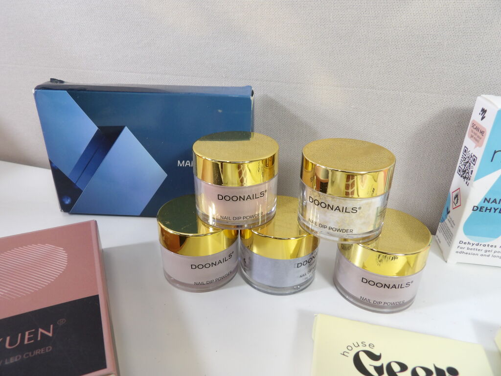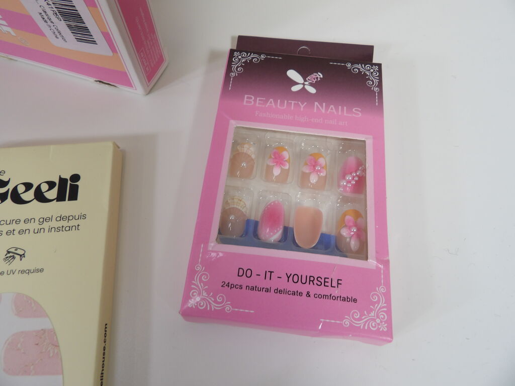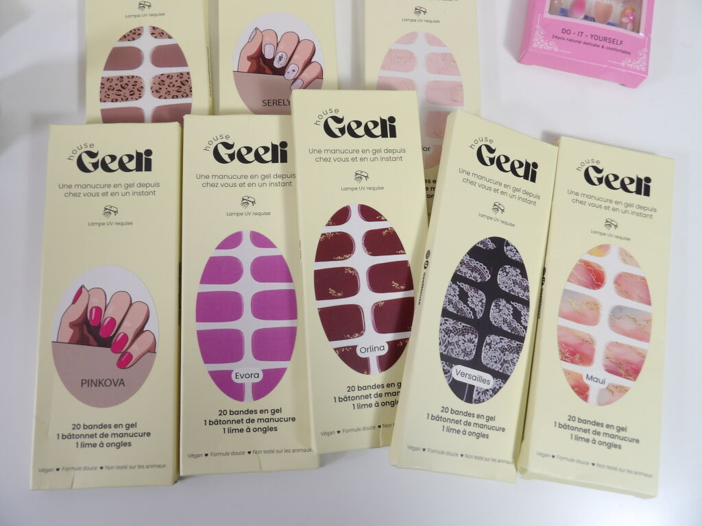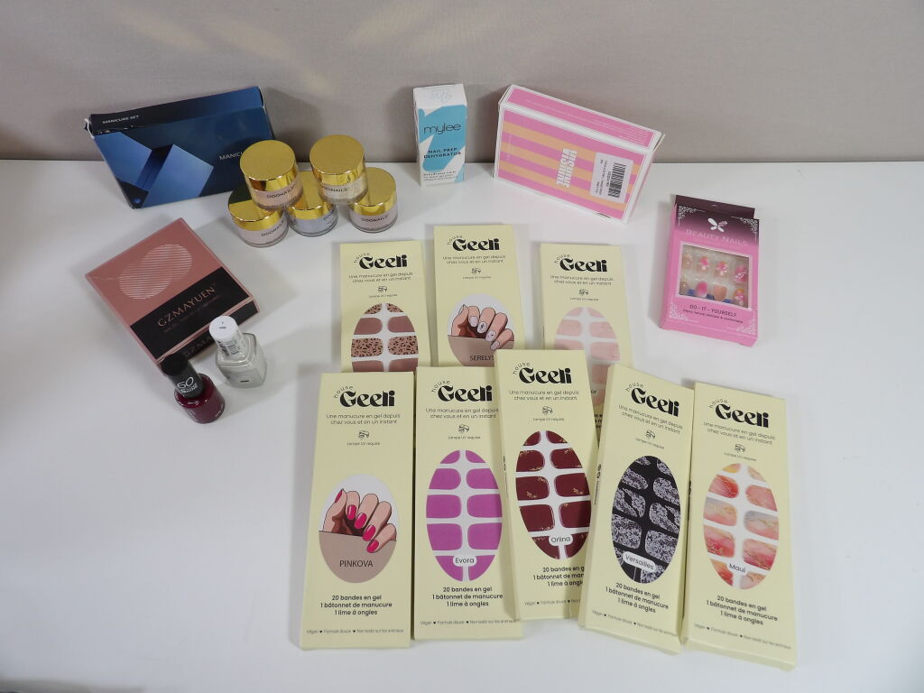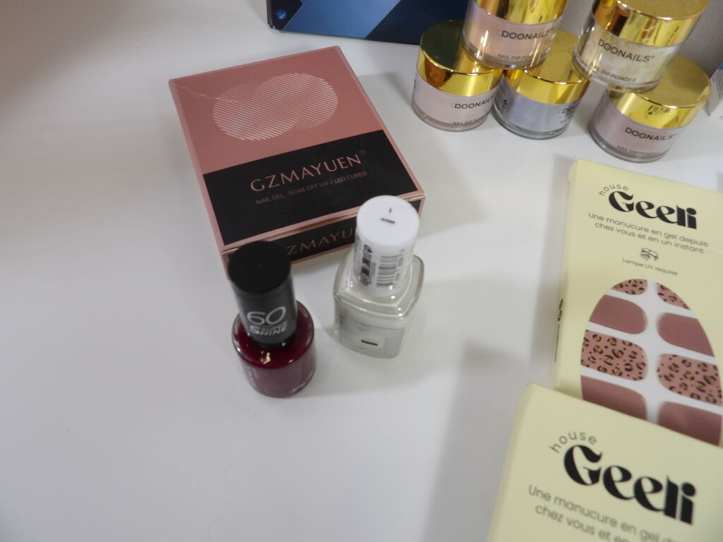 Lot pour les ONGLES neuf et occasion x18 : Vernis à ongles, faux ongles, poudres DOONAILS, bandes en gel GEELI...