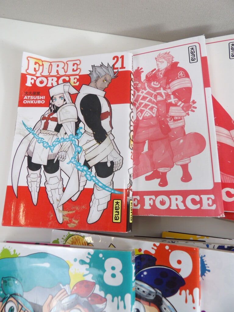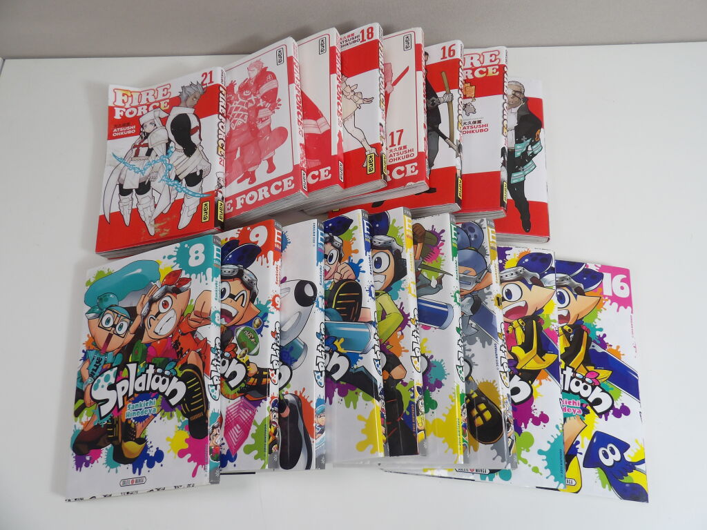 Mangas : Splatoon par Sankichi Hinodeya édition Soleil Manga tomes de 8 à 16 on y joint Fire Force par Atsushi Ohkubo, édition Kana tomes de14 à 21