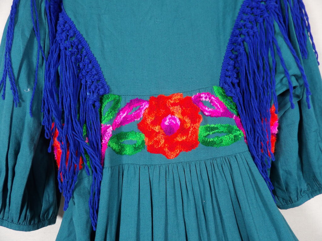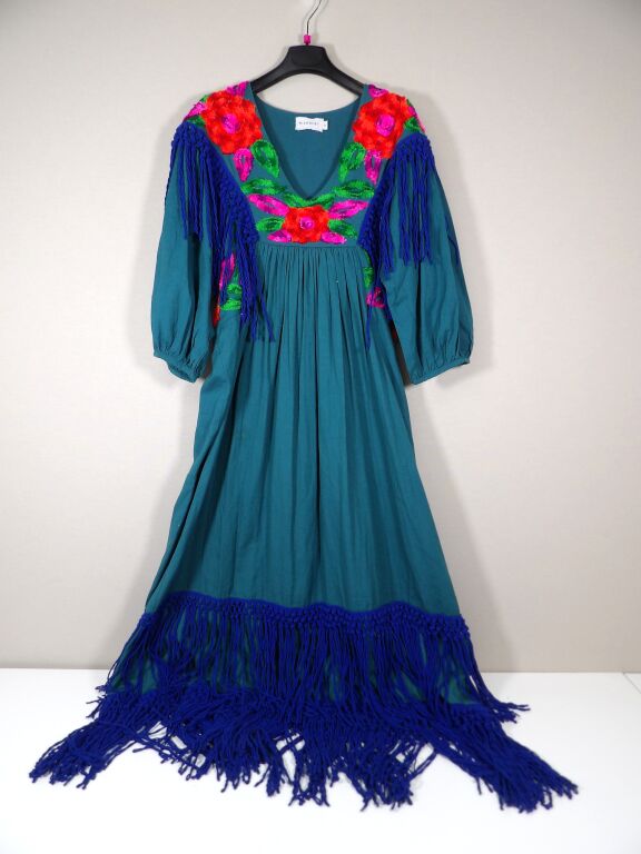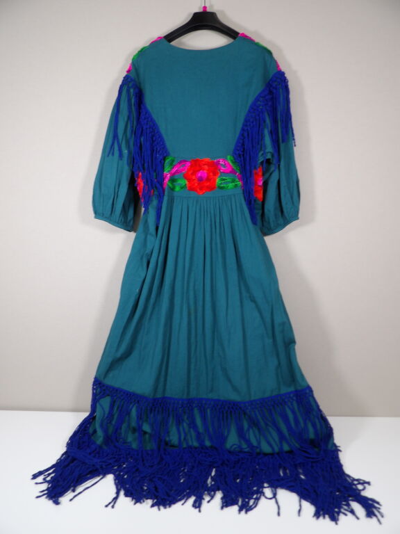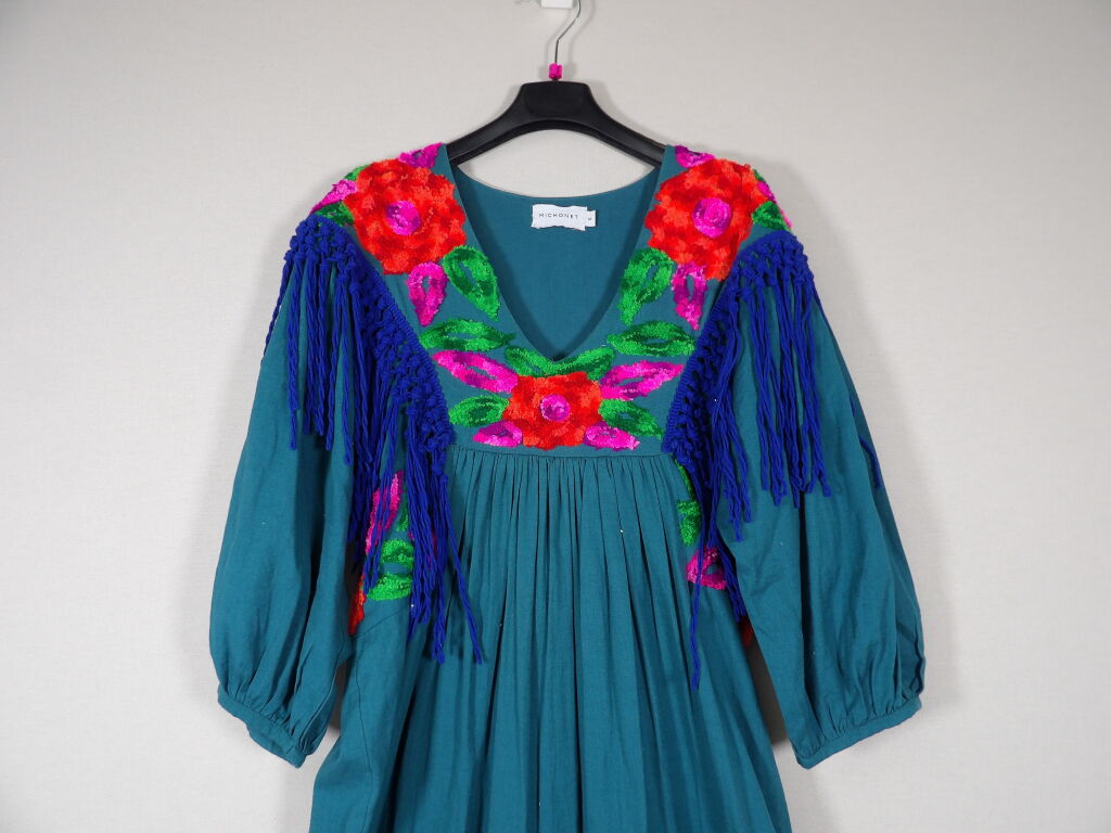 Michonet - Robe inspiration méxicaine brodée et franges - Taille S - Occasion bon état