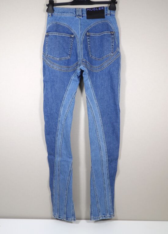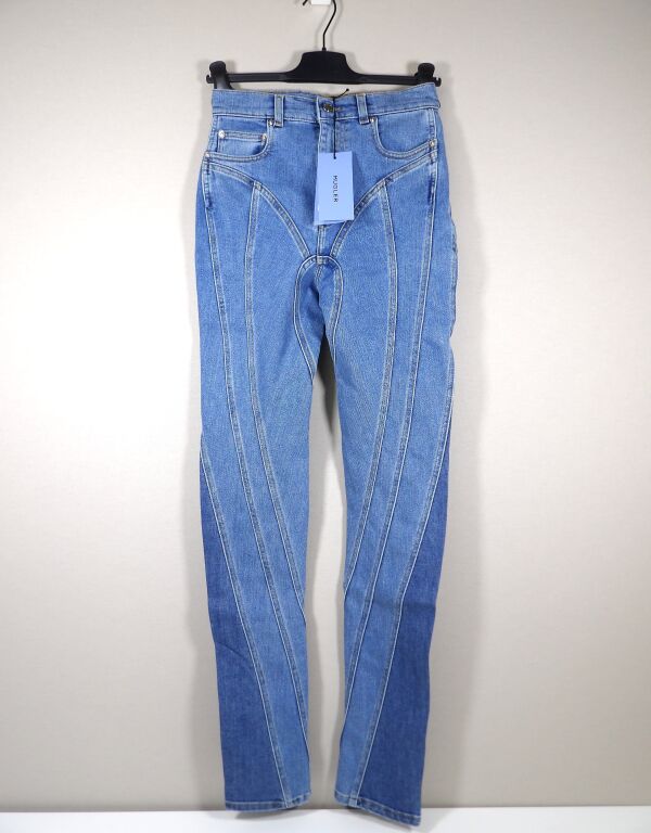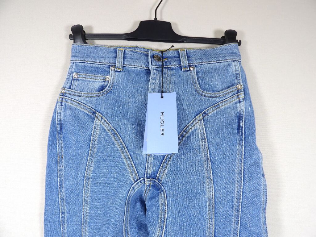 MUGLER - Pantalan slim en denim à découpes spirales - Neuf avec étiquette - Taille 36