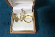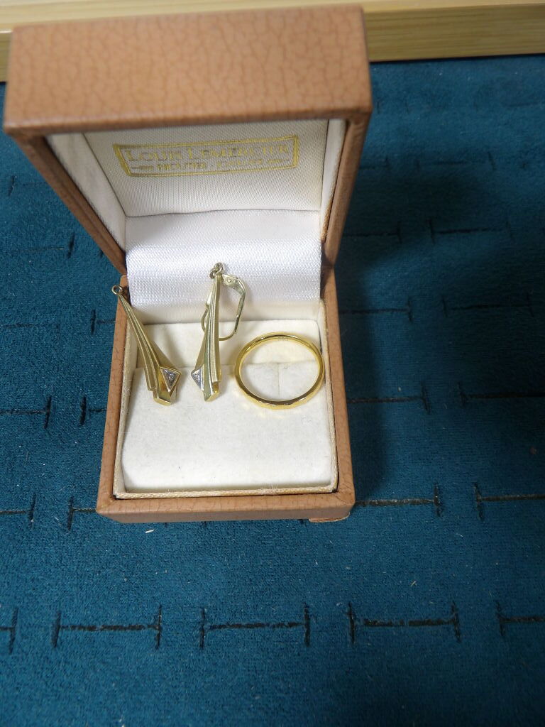 Or 14K une bague et débris de boucles d'oreille, petites pierres blanches poids brut 4,34 g.