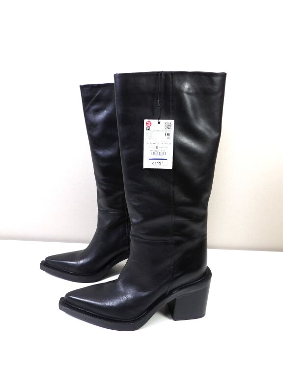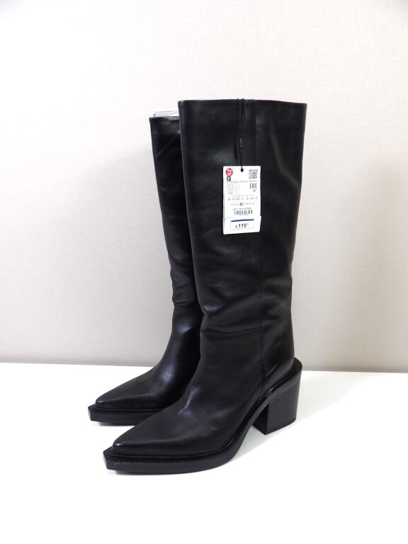 Paire de bottes Zara en cuir noir -Neuf avec étiquette - Taille 38