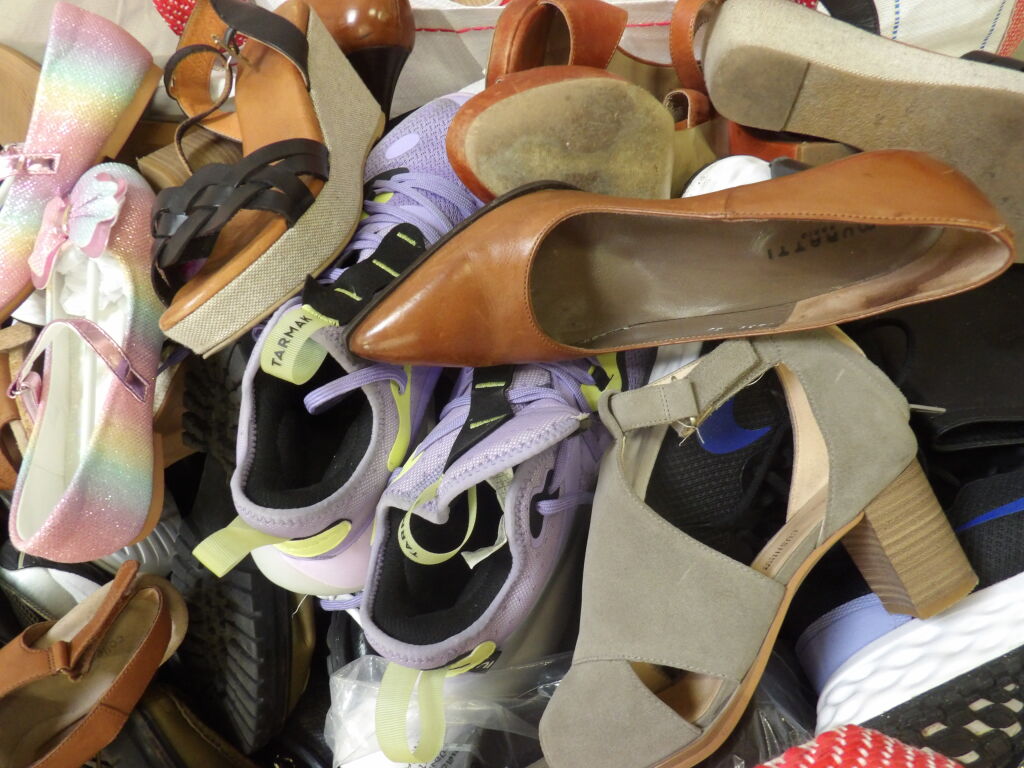 Palette de 80 paires de chaussures d'occasion, certaines neuves : Homme, Femme et enfant (divers gammes et marques ....)