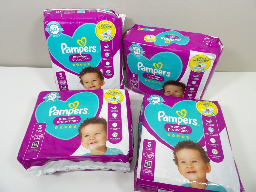 PAMPERS Premium protection : Lot de x4 paquets de 32 couches, soit 160 couches ! NEUFS ! Taille 5 (11-16 kgs).