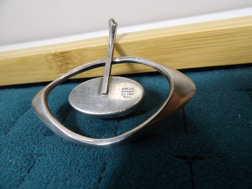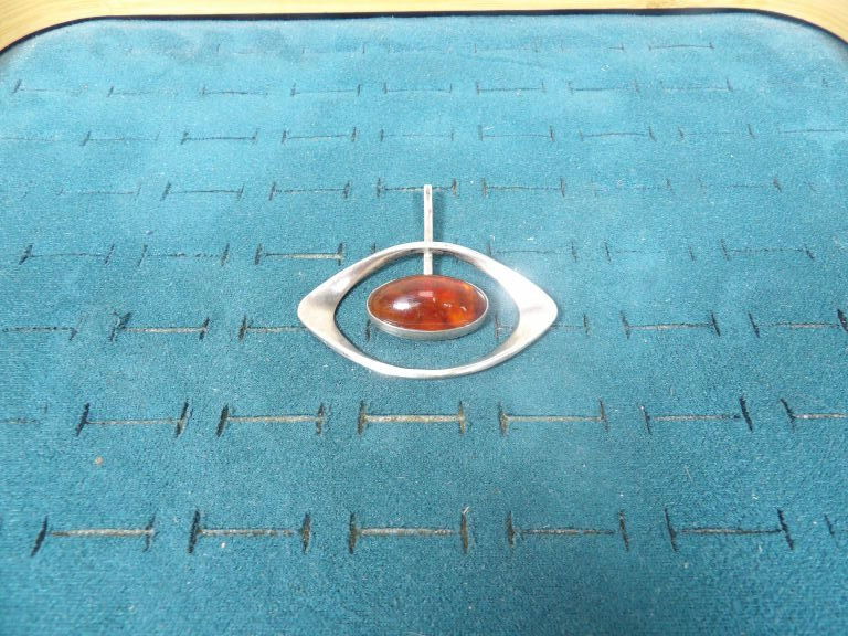 Pendentif en argent, cabochon en ambre, travail danois (poids brut : 15,54 g.)
