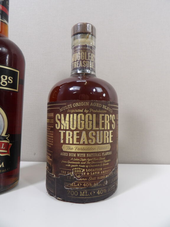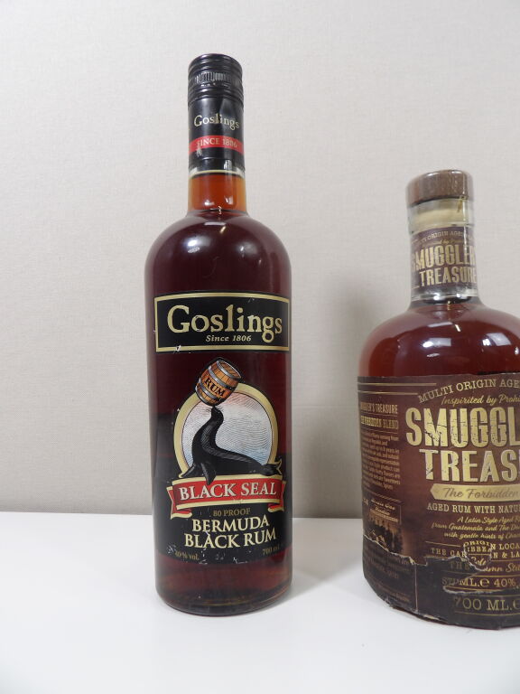 Spiritueux : 2 bouteilles (700 ml) de rhum 1x Goslings Black Seals (rhum des Bermudes, Bahamas) et Smuggler's Treasure (Guatémala et République Dominicaine)