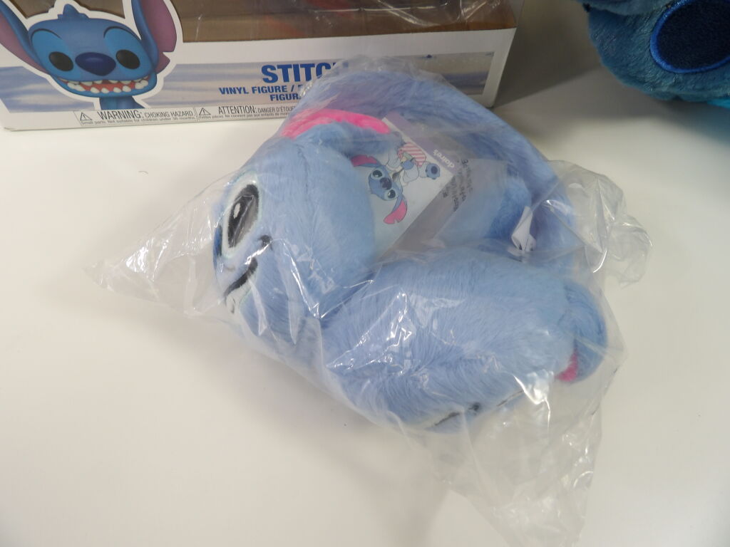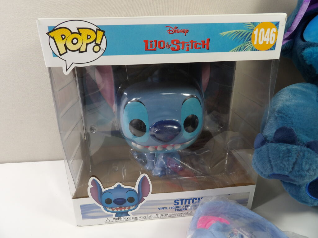 STITCH : Grand POP #1046 etat neuf (emballage abimé); et Peluche d'occasion.