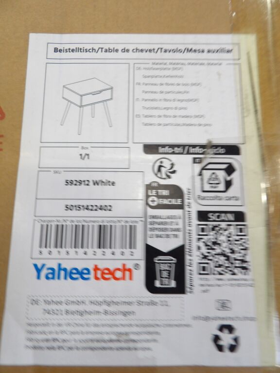 Table de chevet à tiroir blanc et pieds en bois à monter de la marque Yaheetech