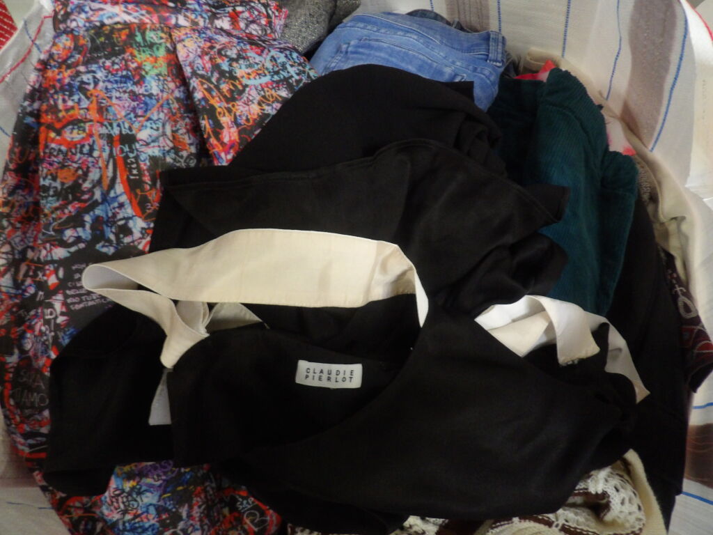 1/2 palette de 85 pièces de vêtements d'occasion et certains neufs : Femme, Enfant, Homme ( divers gammes et marques dont Maje, Claudie Pierlot...) - ATTENTION ce lot est d'occasion tous états et contient divers gammes donc de l'entrée type KIABI aussi. il n'est pas composé uniquement des marques citées.