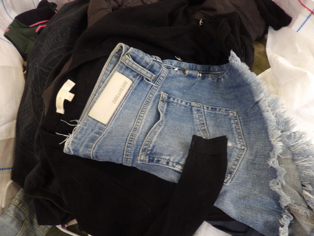 1/2 palette de 85 pièces de vêtements d'occasion et certains neufs : Femme, Enfant, Homme ( divers gammes et marques dont Maje, Zadig & Voltaire...) - ATTENTION ce lot est d'occasion tous états et contient divers gammes donc de l'entrée type KIABI aussi. il n'est pas composé uniquement des marques citées.