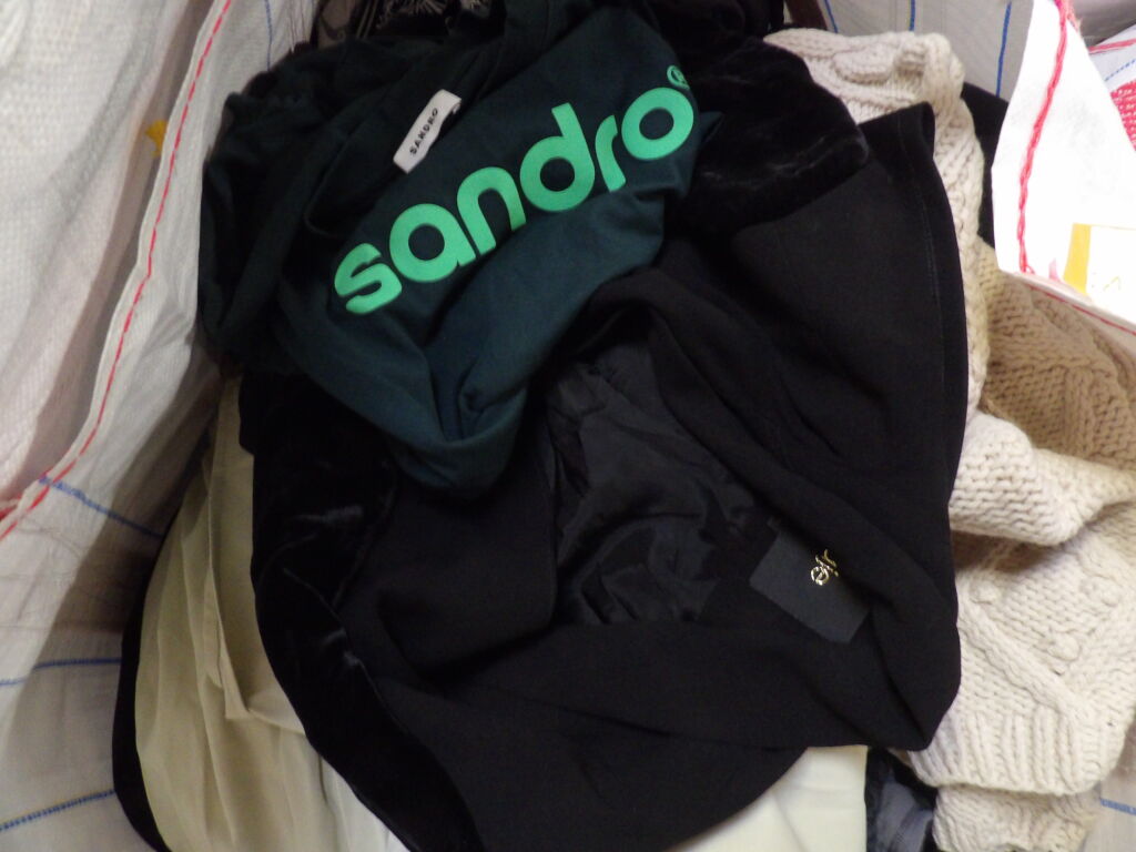 1/2 palette de 85 pièces de vêtements d'occasion et certains neufs : Femme, Enfant, Homme ( divers gammes et marques dont Sandro, Maje...) - ATTENTION ce lot est d'occasion tous états et contient divers gammes donc de l'entrée type KIABI aussi. il n'est pas composé uniquement des marques citées.