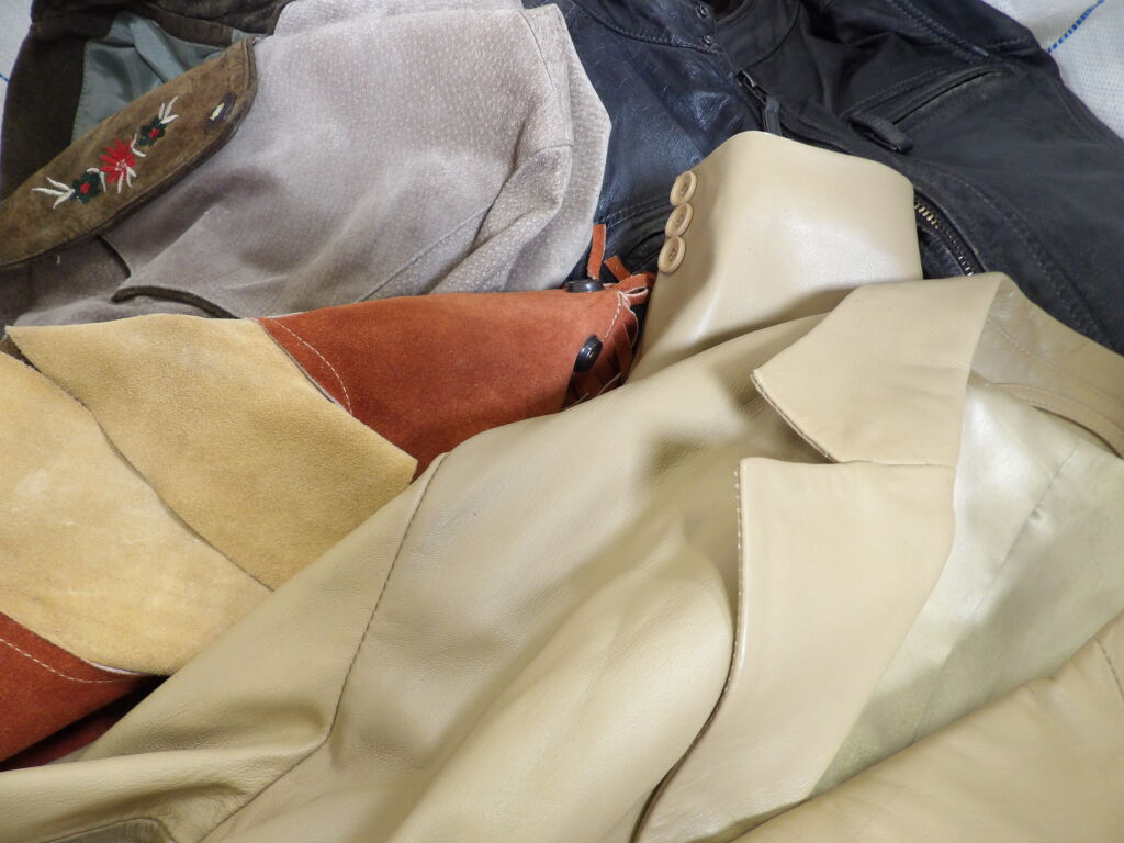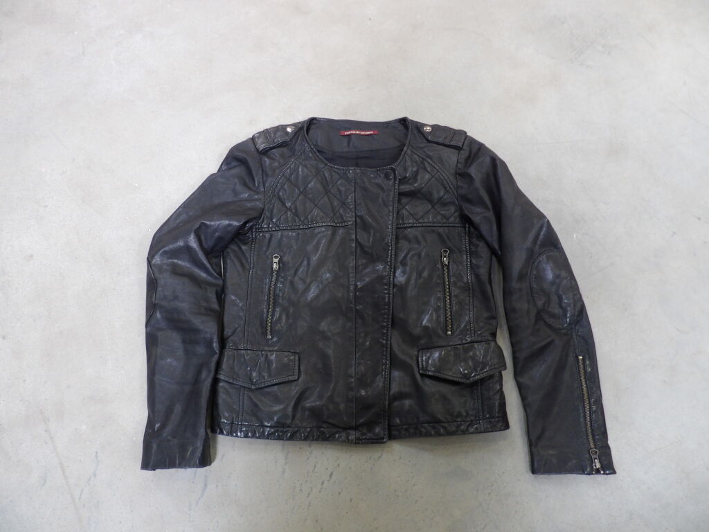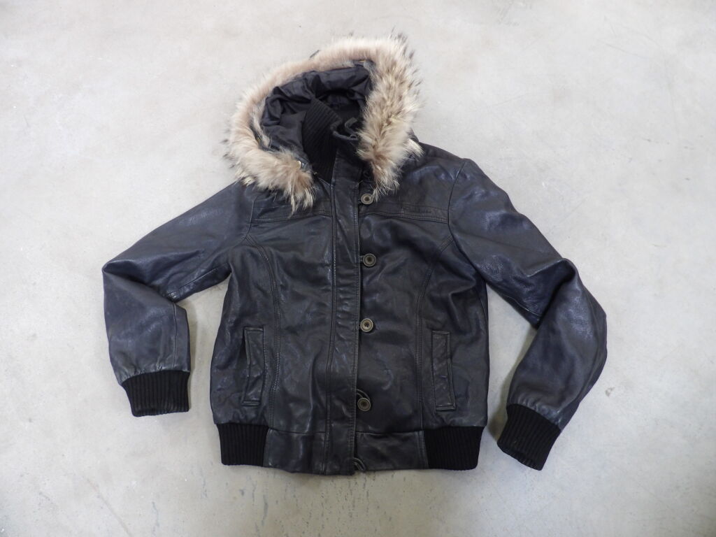 1/2 Palettes de vêtements en CUIR d'occasion comprenant 11 articles (états divers, satisfaisant, correct, bon état... ils ont été portés) : Vestes, perfectos, manteaux, ... Idéal Friperie - De nombreuses marques: Redskins, Oakwood, Comptoir des cotonniers, Whistles...