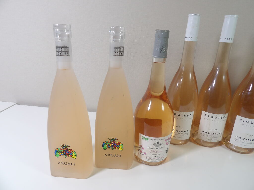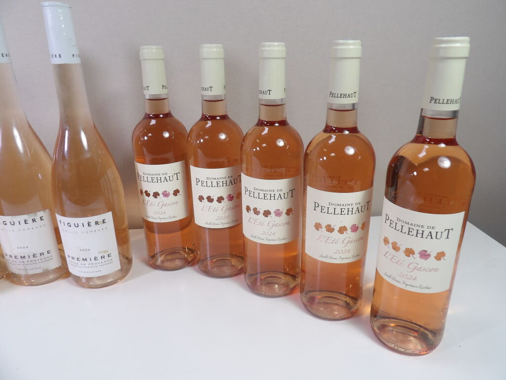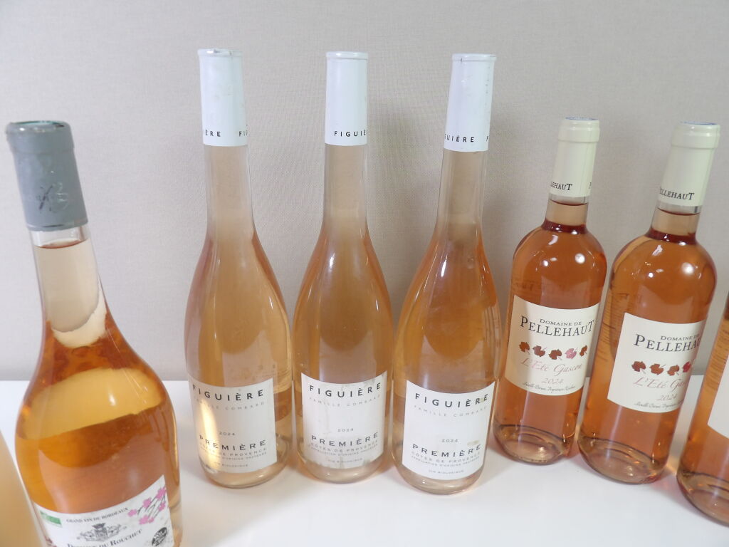11 bouteilles de vin rosé dont 5 du Domaine de Pellehaut l'Eté Gascon, 3 x Figuière Pays d'Oc, 2 x Argali Puech-Haut Pays d'Oc et une bouteille de Bordeaux domaine du Rouchet.