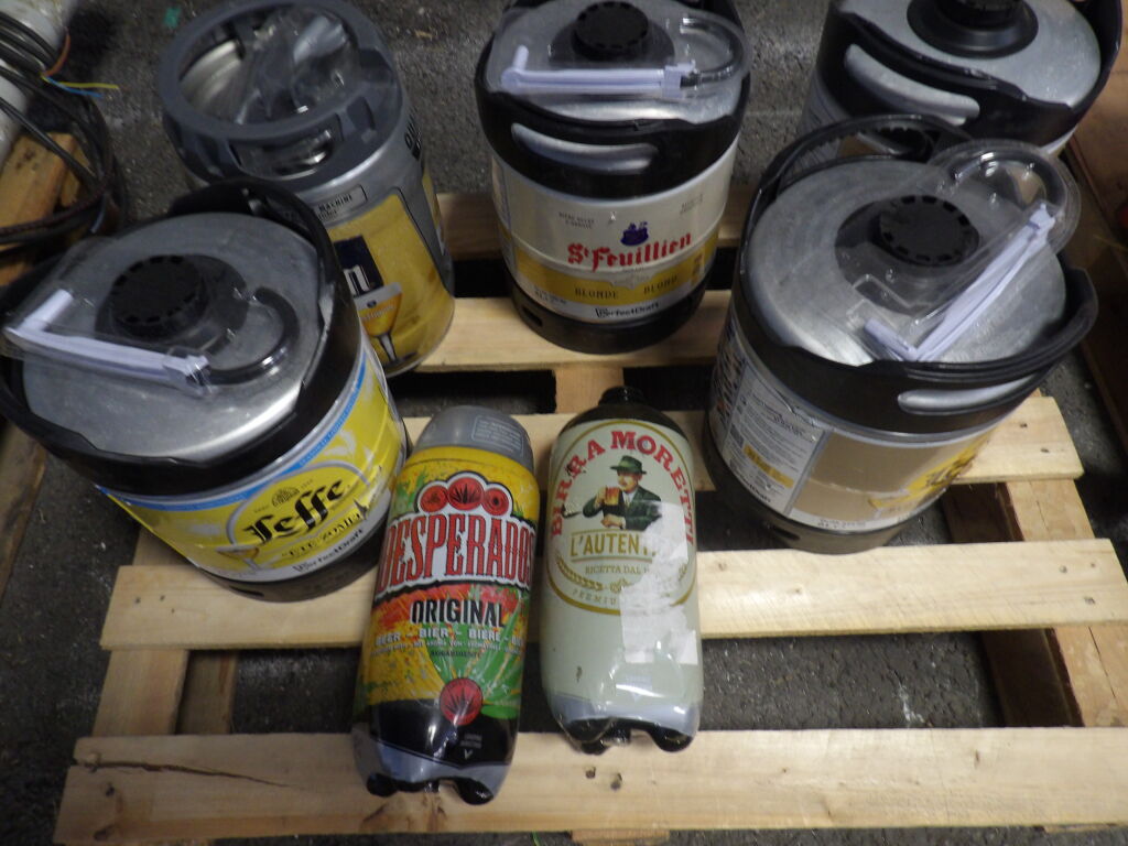 Bière : 4 fûts de 6 L. (Leffe, Saint Feuillien), 1 de 5L Affligem et 2 de 2 L. Despérados et Moretti