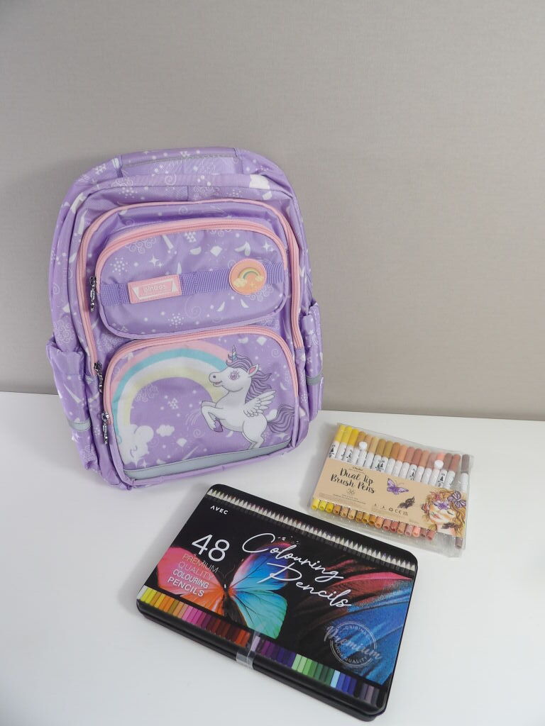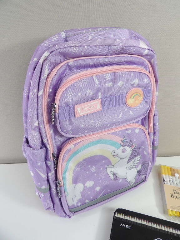 BINBES Sac à dos violet, avec licorne et arc en ciel; NEUF - idéal primaire. NEUF