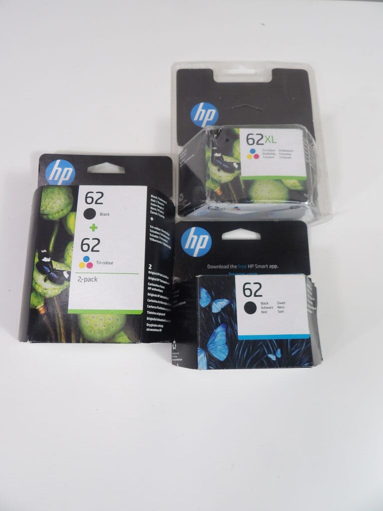 Bureautique - Lot de 3 boîtes cartouches d'encre HP référence 62 : pack couleurs et noire, noire et XL couleurs
