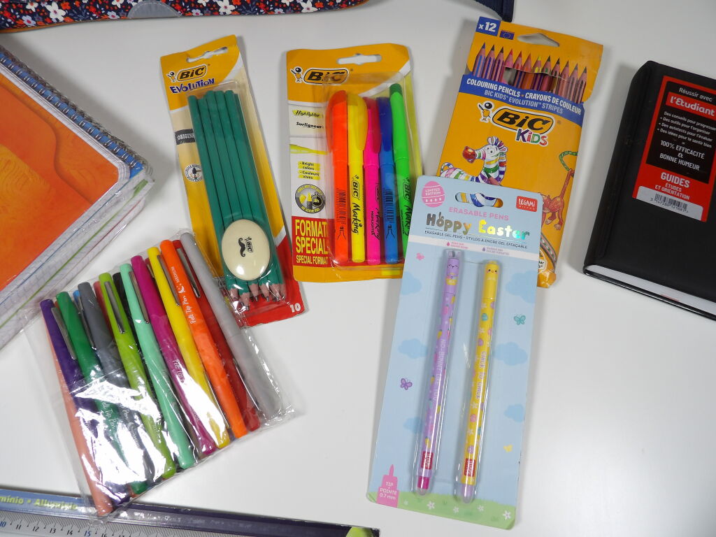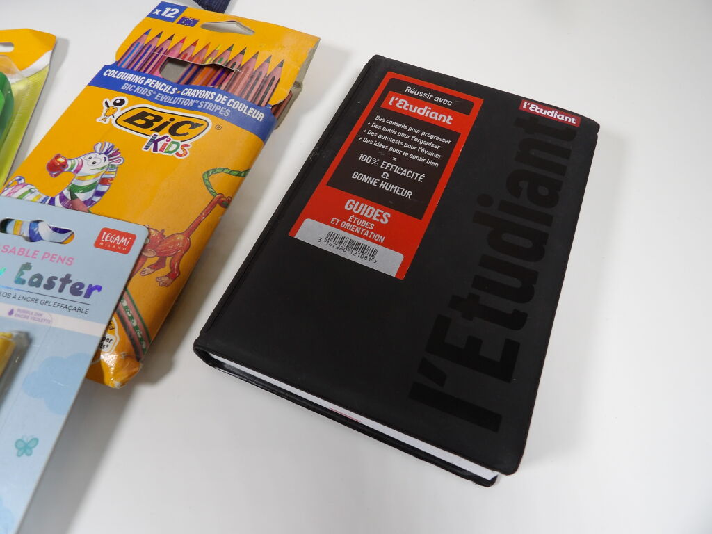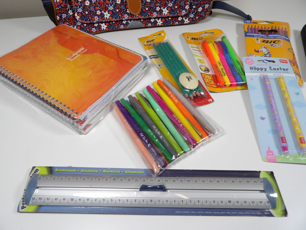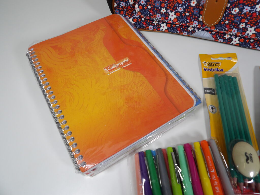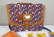 Cartable Tann's à motifs liberty, de 38 cm (dimensions : 38x31x14cm) NEUF, et on y inclut des fournitures scolaires: règle, feutres, crayons de couleurs, cahiers, etc... dont un agenda L'Etudiant 2025-2026.
