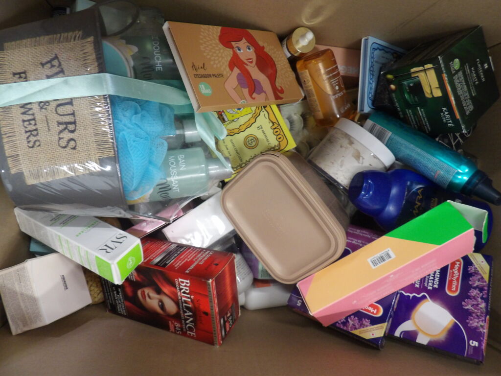 Carton de 80 articles cosmétiques divers neufs et d'occasion (Parfums, faux ongles, maquillages, produits d'hygiène...)