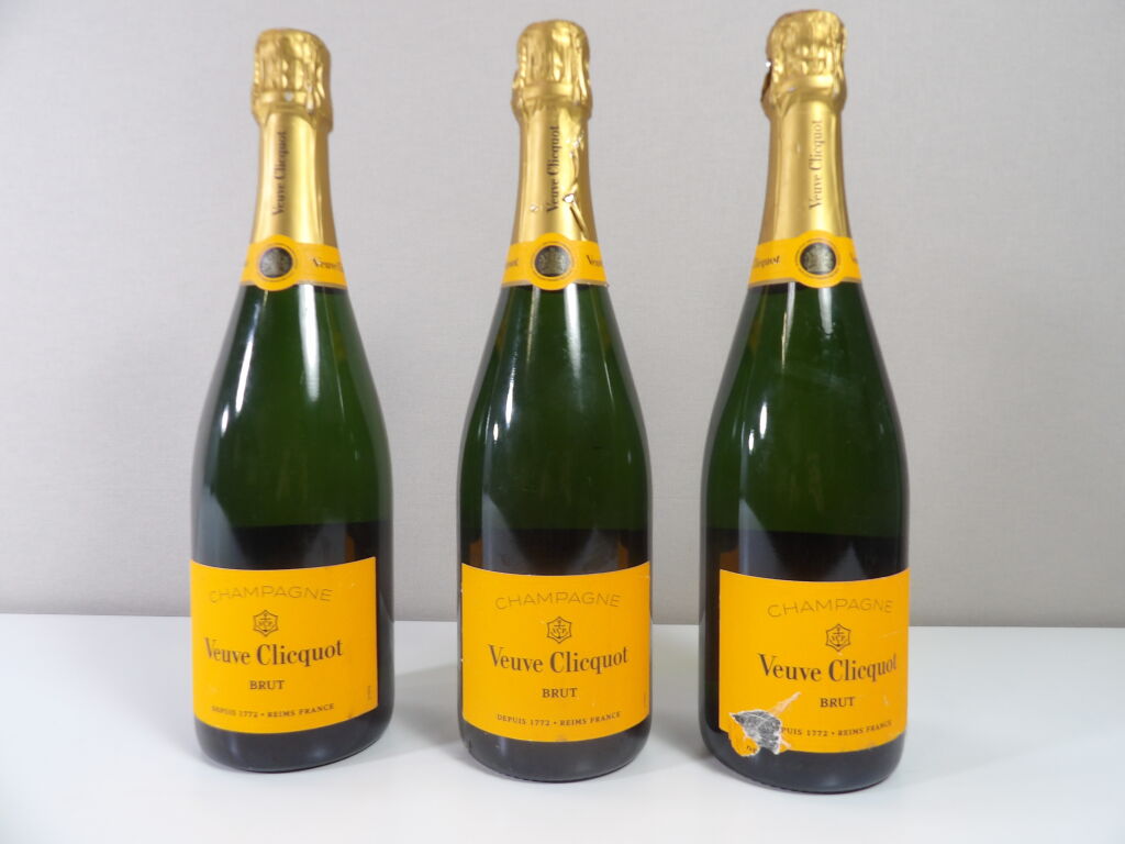 Champagne : Veuve Cliquot 3 bouteilles (étiquettes abîmées)