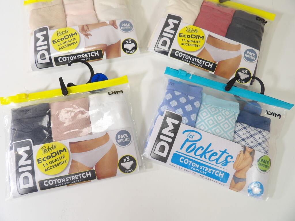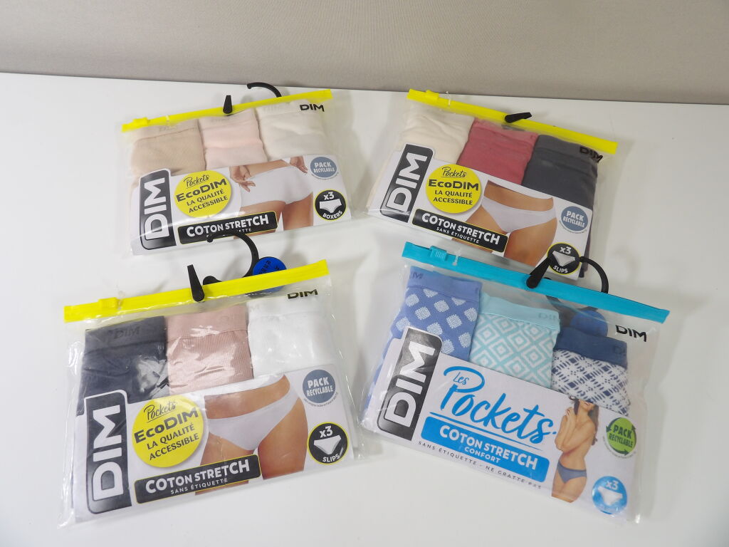DIM Lot de x4 packs de 3 culottes en coton stretch NEUVES en taille 36/38