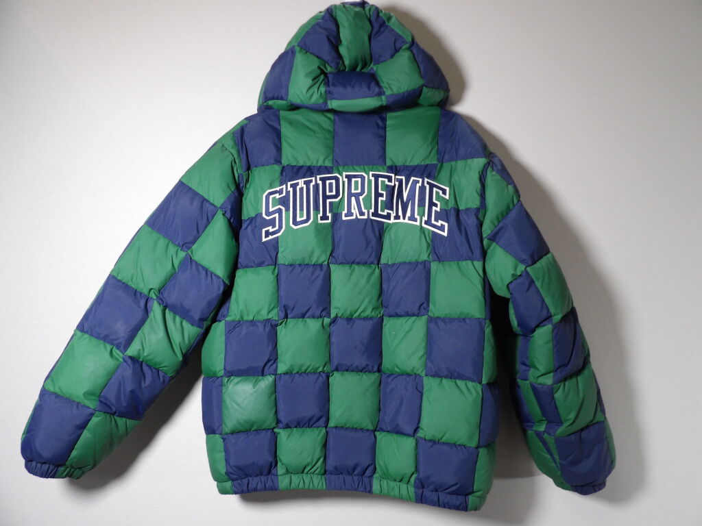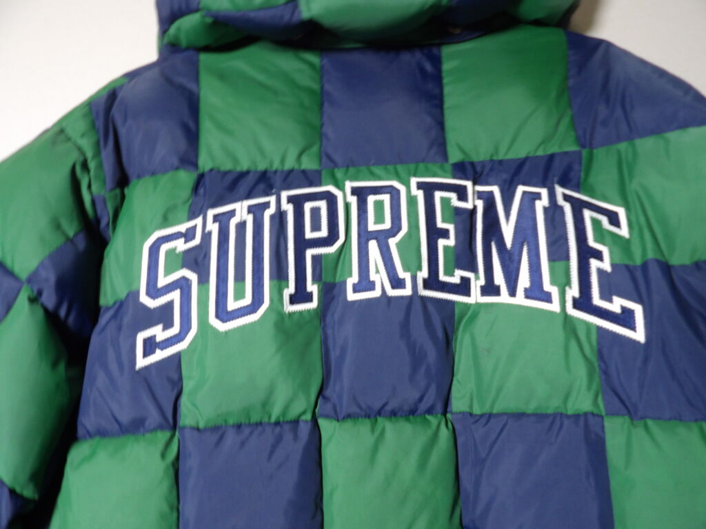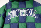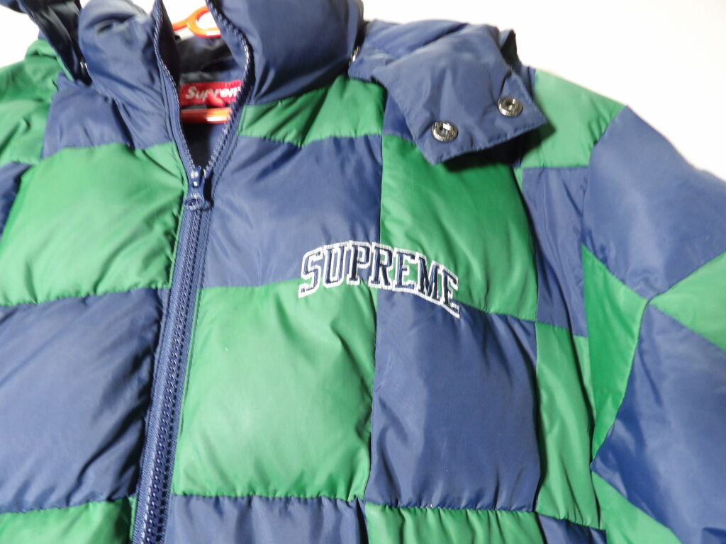 Doudoune à damiers bleu et vert - SUPREME - Occaion bon état ( à noter un trou de cigarette) - Taille M