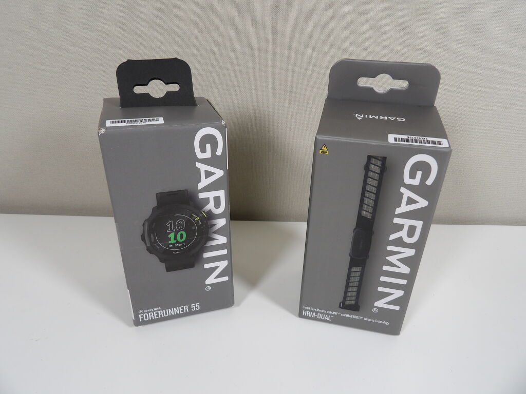 GARMIN Montre connectée FORERUNNER 55 pour Running + GPS, ainsi qu'un capteur de fréquence cardiaque HRM-DUAL. Etats neufs boites descellées.