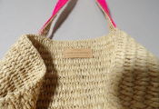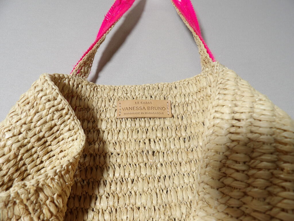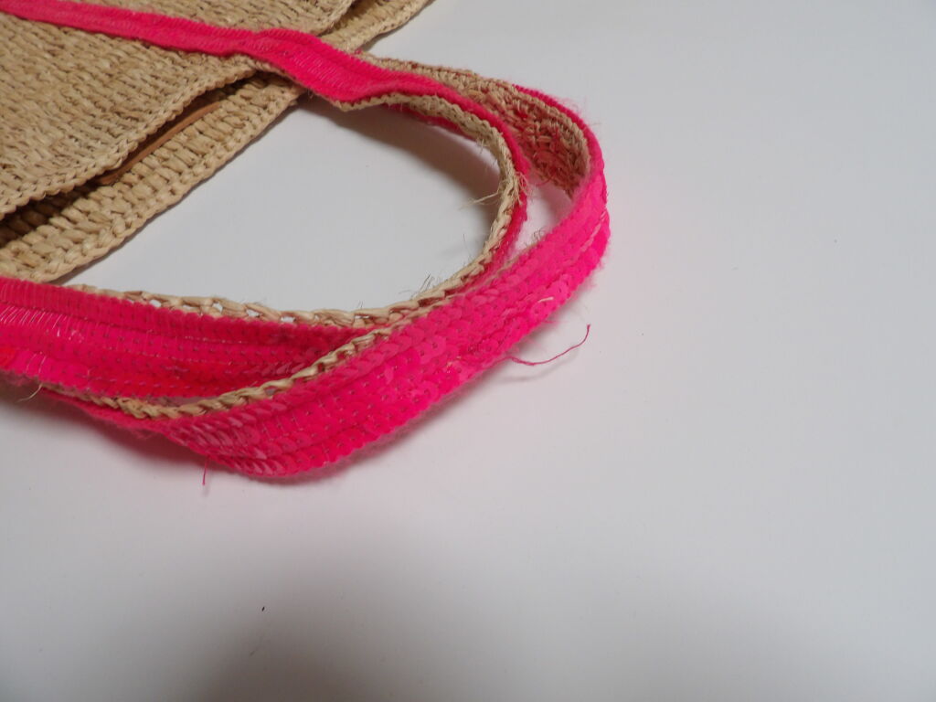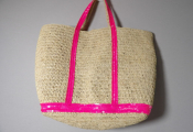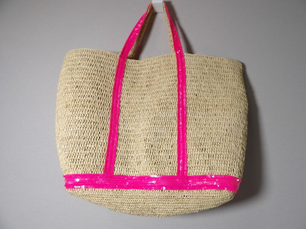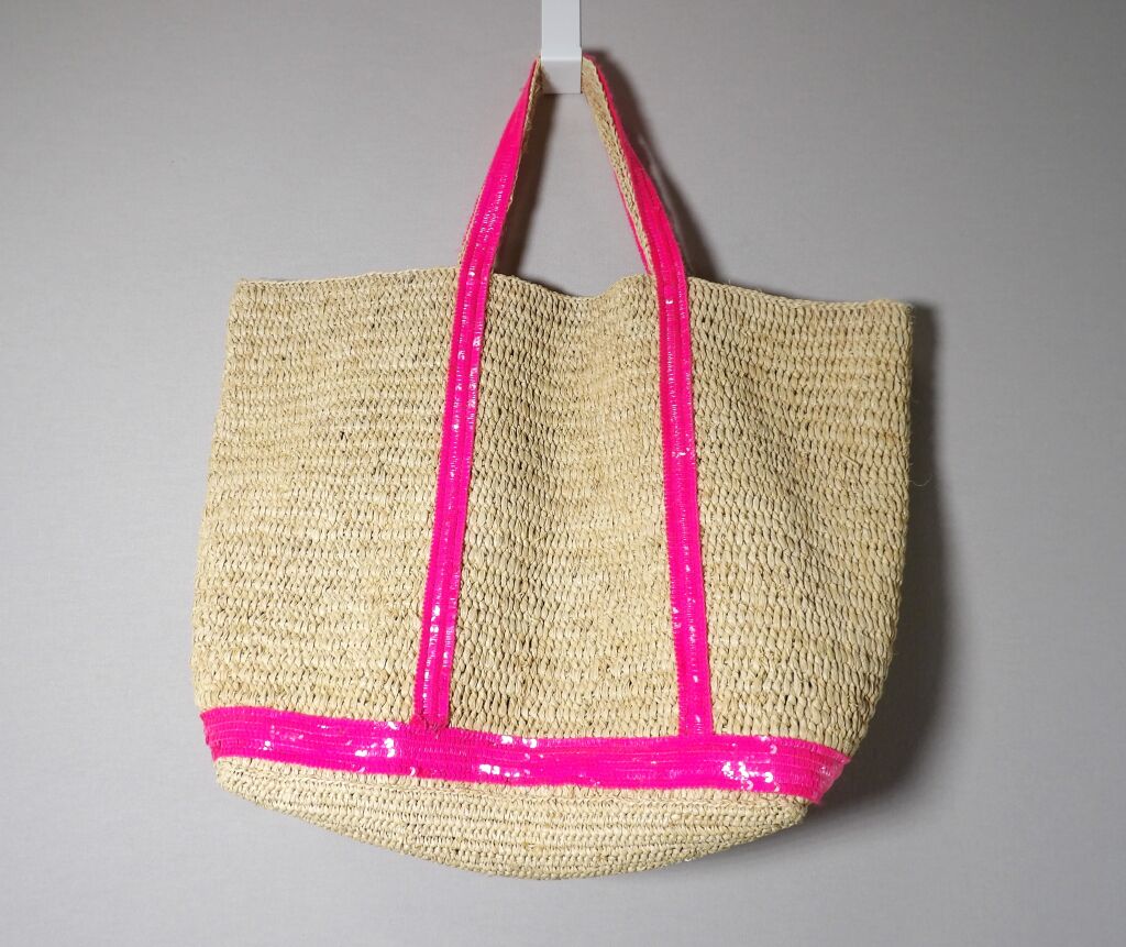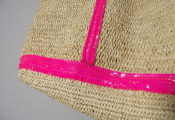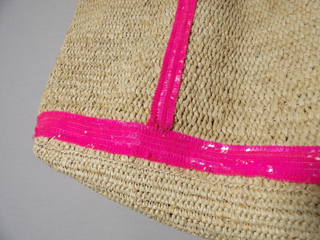 Grand cabas en rafia - Vanessa Bruno - sequins rose fluo - occasion - bon état à noter des sequins un peu abîmés