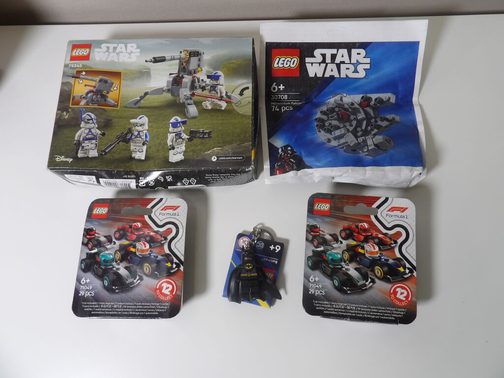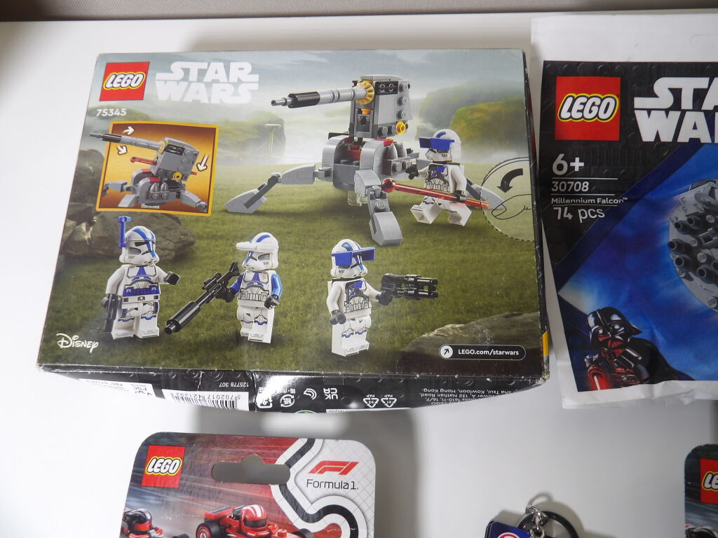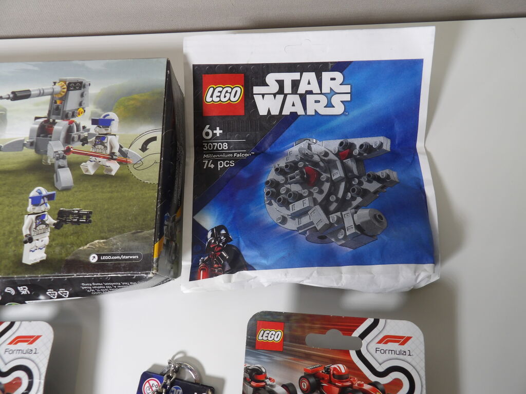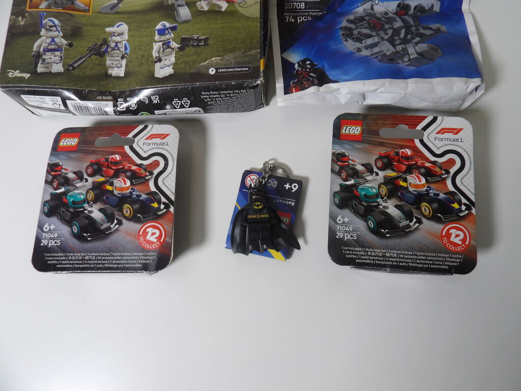 Légo Star wars ensembles 75345 et 30708 (faucon Millennium), 2 mini F1 on y joint un porte-clé Batman.
