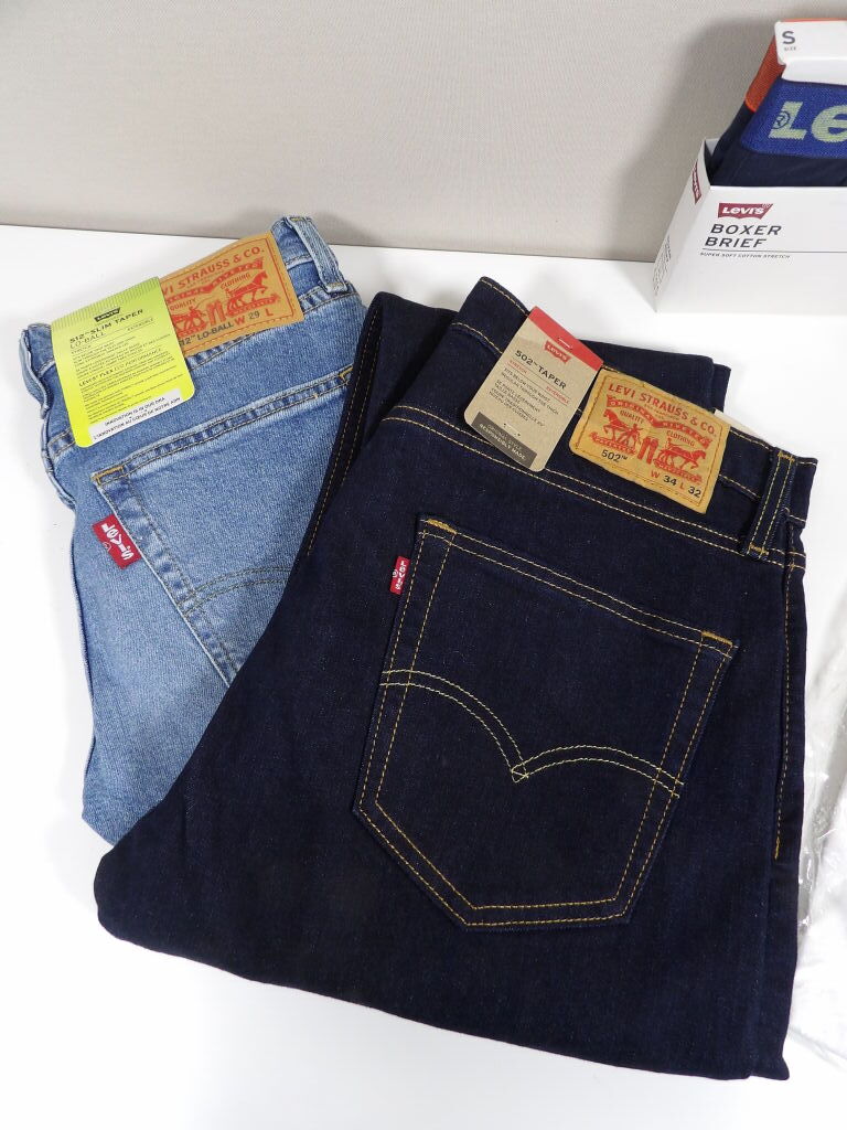 LEVI'S: Lot de x2 jeans NEUFS :512 SLIP TAPER W29 et 502 TAPER W32 L32. On y inclut un Tshirt XXL, et x2 packs de 2 caleçons en S neufs aussi.