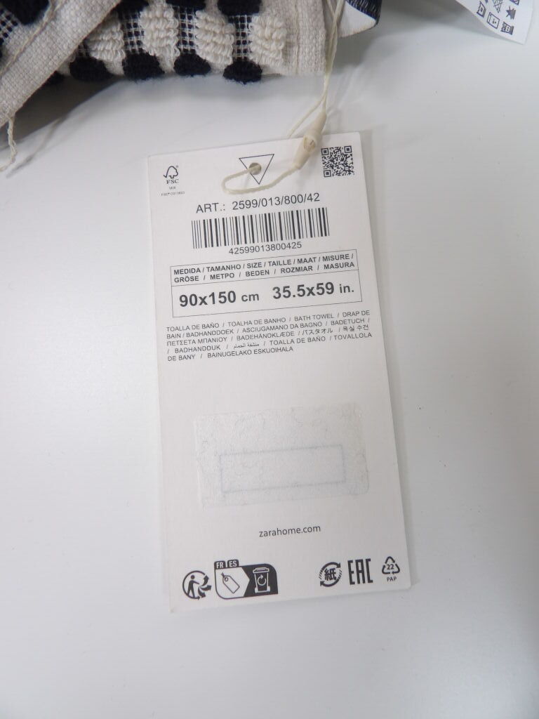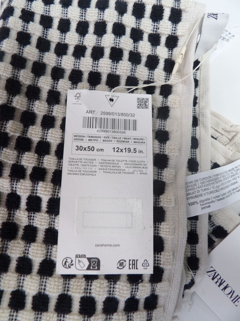 Linge de maison Zara Home ensemble composé de 2 draps de bain 90 x 150 cm, 2 serviettes de toilette 30 x 50 cm, et un tapis de bain 50 x 80 (coton)