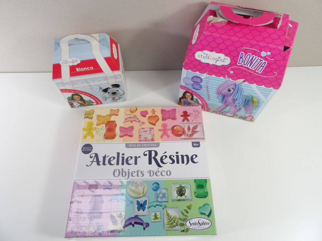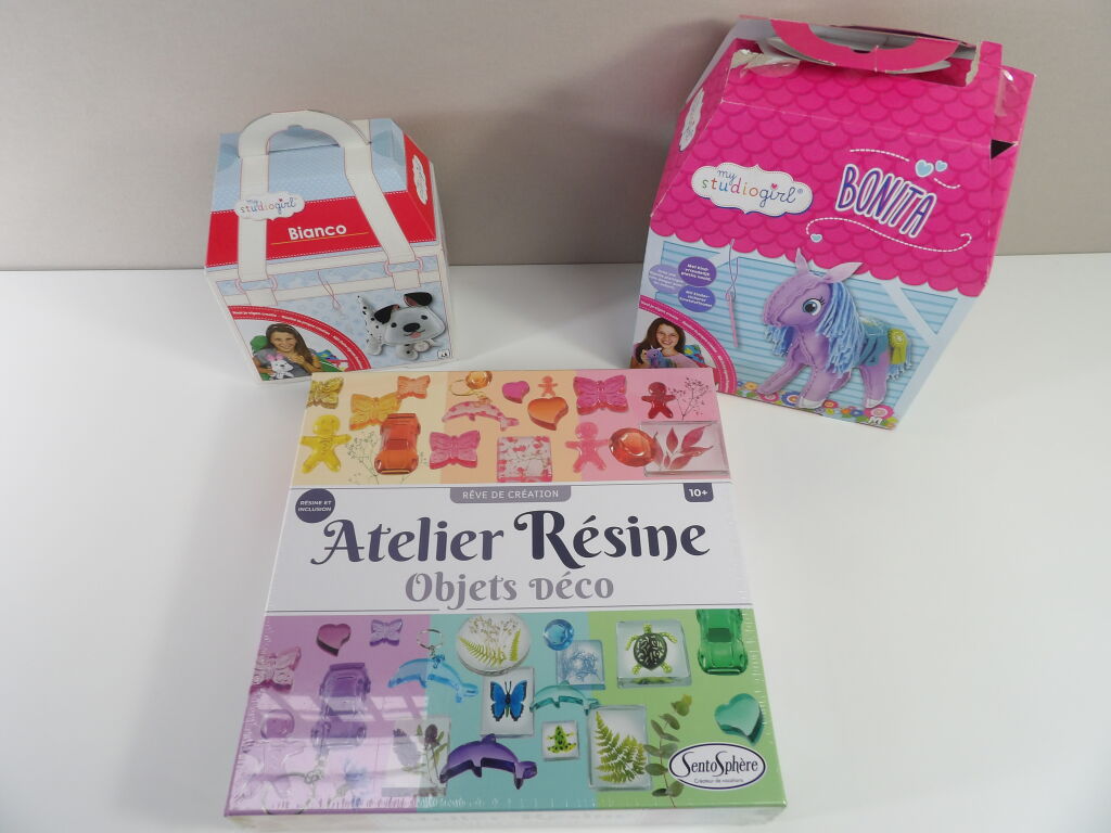 LOISIRS CREATIFS : My studio girl Kits de couture : réalisez des créations en feutrine, avec aiguilles en plastique, x2 Bonita et Bianco (dont un boite abimée descellée), et Atelier résine objet déco. NEUFS.