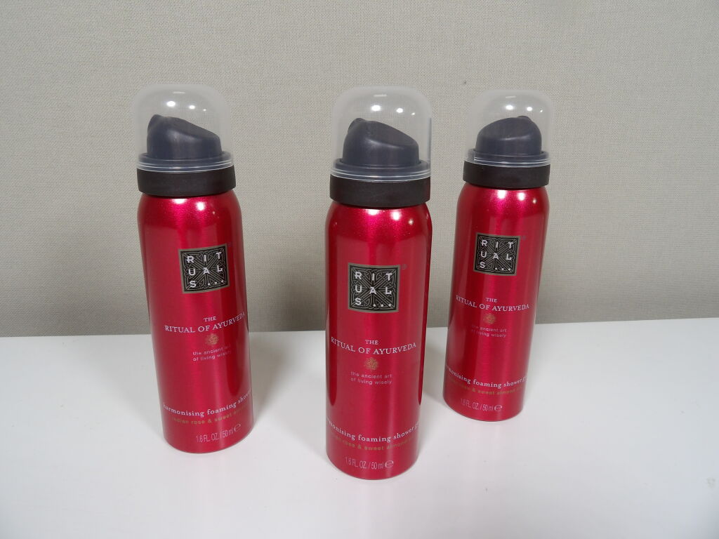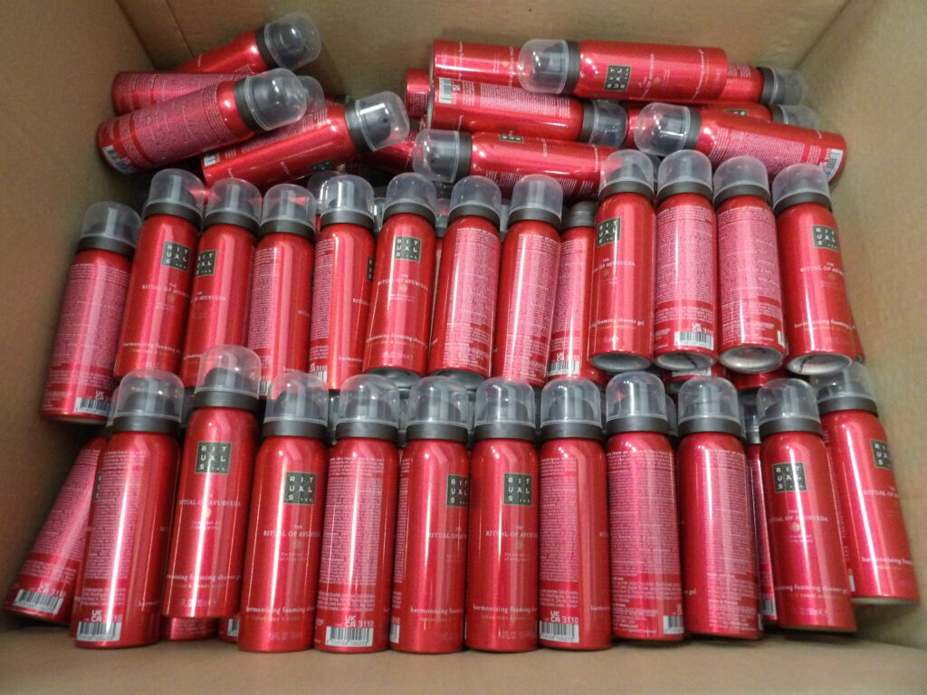 Lot de +170 mini mousse de douche, NEUVES, de 50ML, The Ritual of Ayurveda : Rose indienne et huile d'amande douce. **5,90€ l'unité en commerce.**